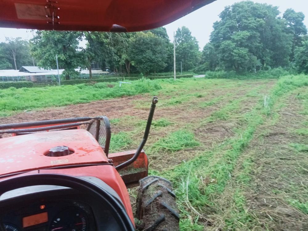ให้บริการรถแทรกเตอร์ตัดหญ้า บริเวณแปลงสาธิตเกษตรอินทรีย์