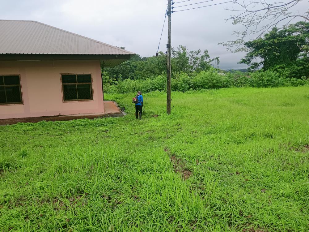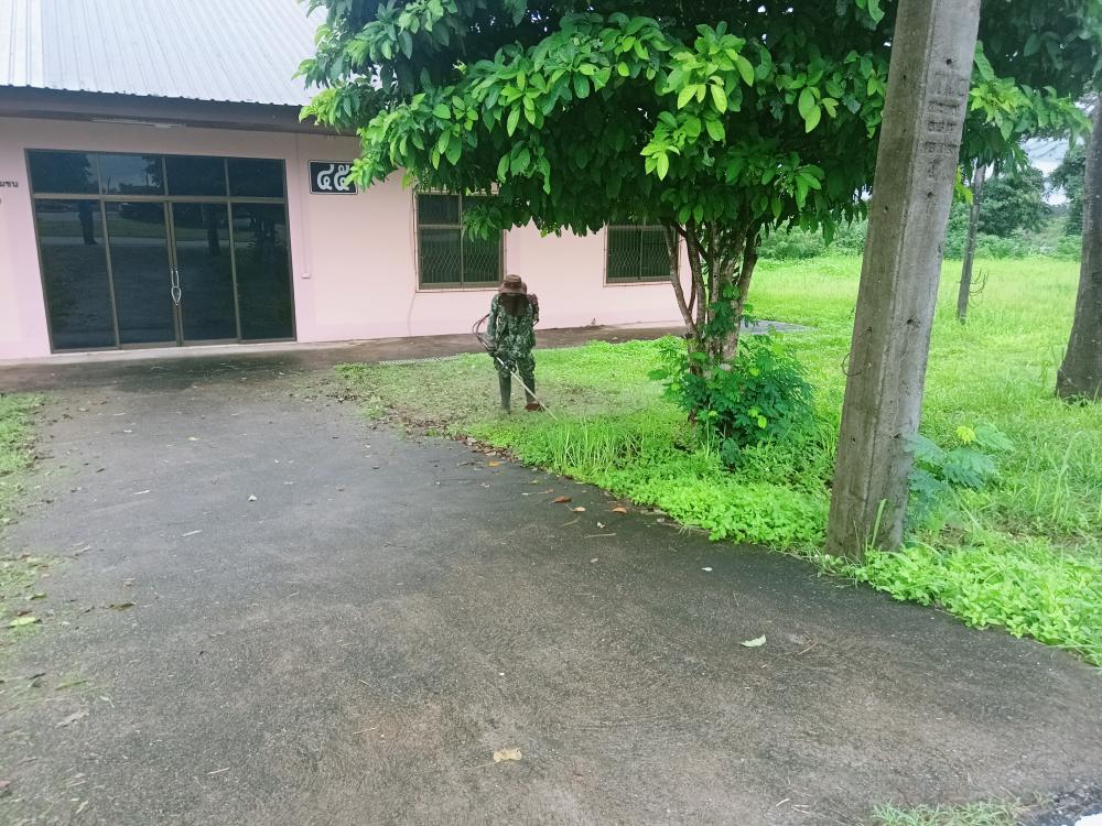 ตัดหญ้าโดยรอบโรงงานแปรรูปอาหารเพื่อชุมชนฯ