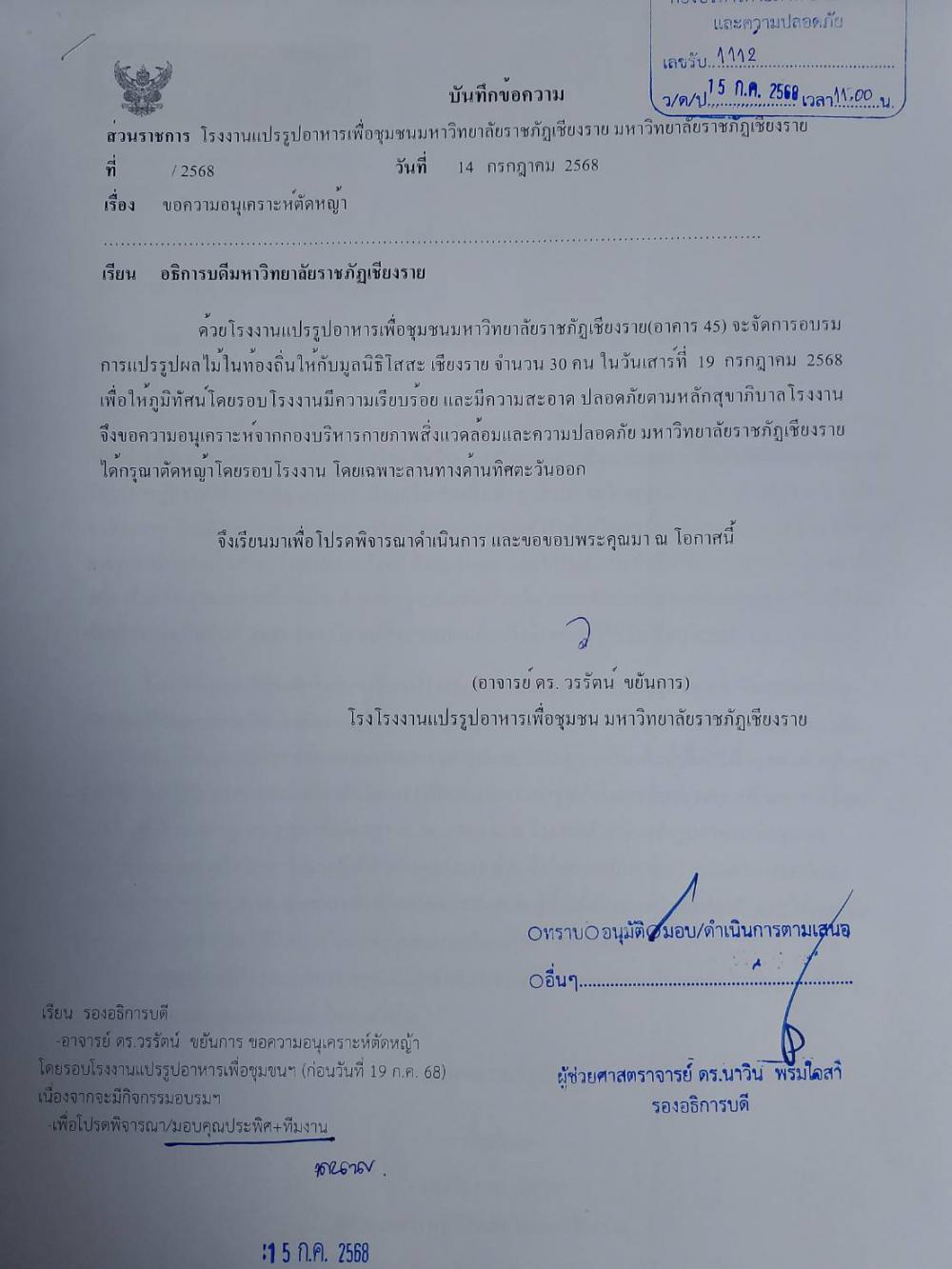 ส่วนกลาง มหาวิทยาลัย ตัดหญ้าโดยรอบโรงงานแปรรูปอาหารเพื่อชุมชนฯ (ขออนุเคราะห์ก่อนวันที่ 19 ก.ค. 2568)