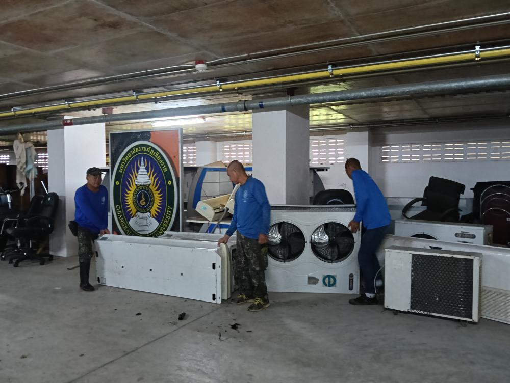 ขนย้ายครุภัณฑ์ชำรุด จำนวน 30 รายการ จากหอประชุมใหญ่ไปอาคารสำนักงานอธิการบดี