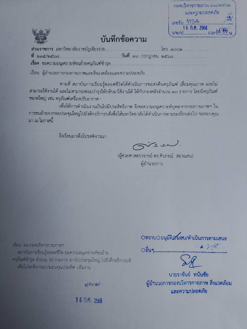 สถาบันการเรียนรู้ฯ ขนย้ายครุภัณฑ์ชำรุด จำนวน 30 รายการ จากหอประชุมใหญ่ไปอาคารสำนักงานอธิการบดี