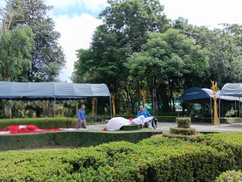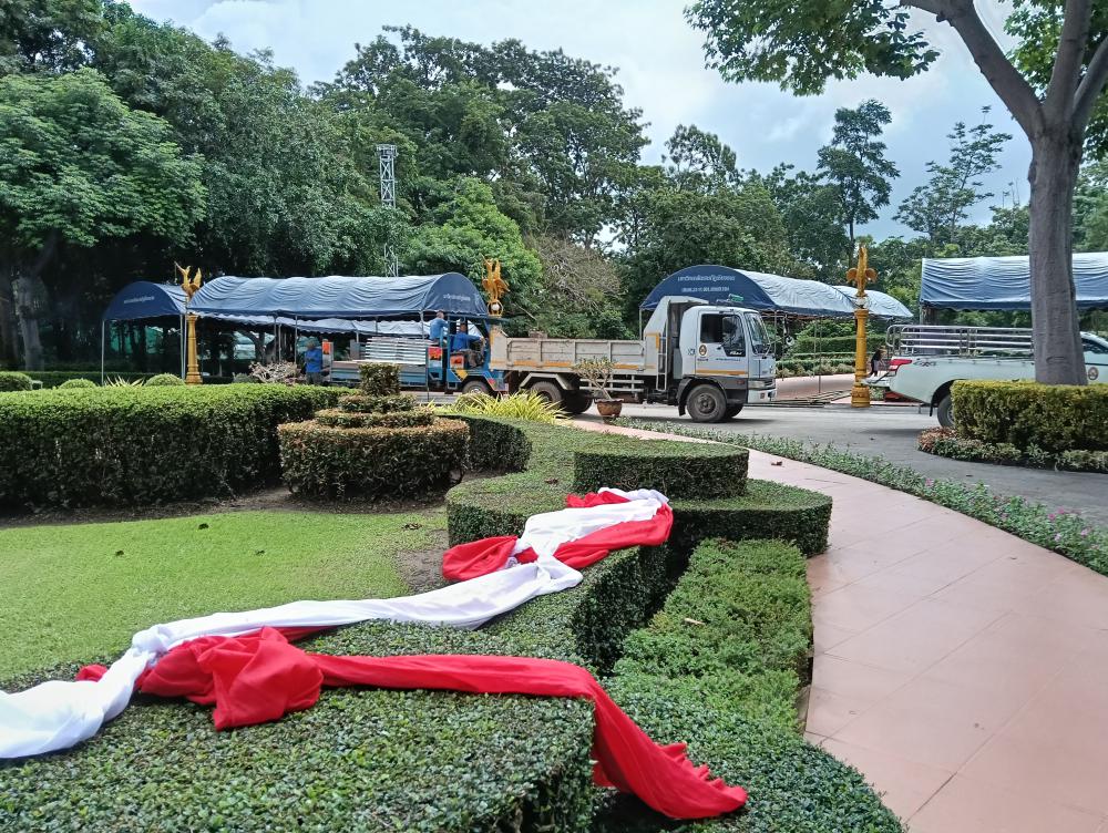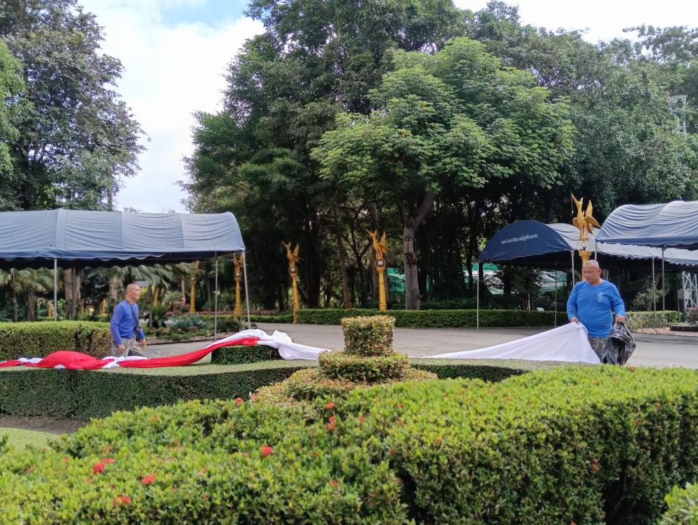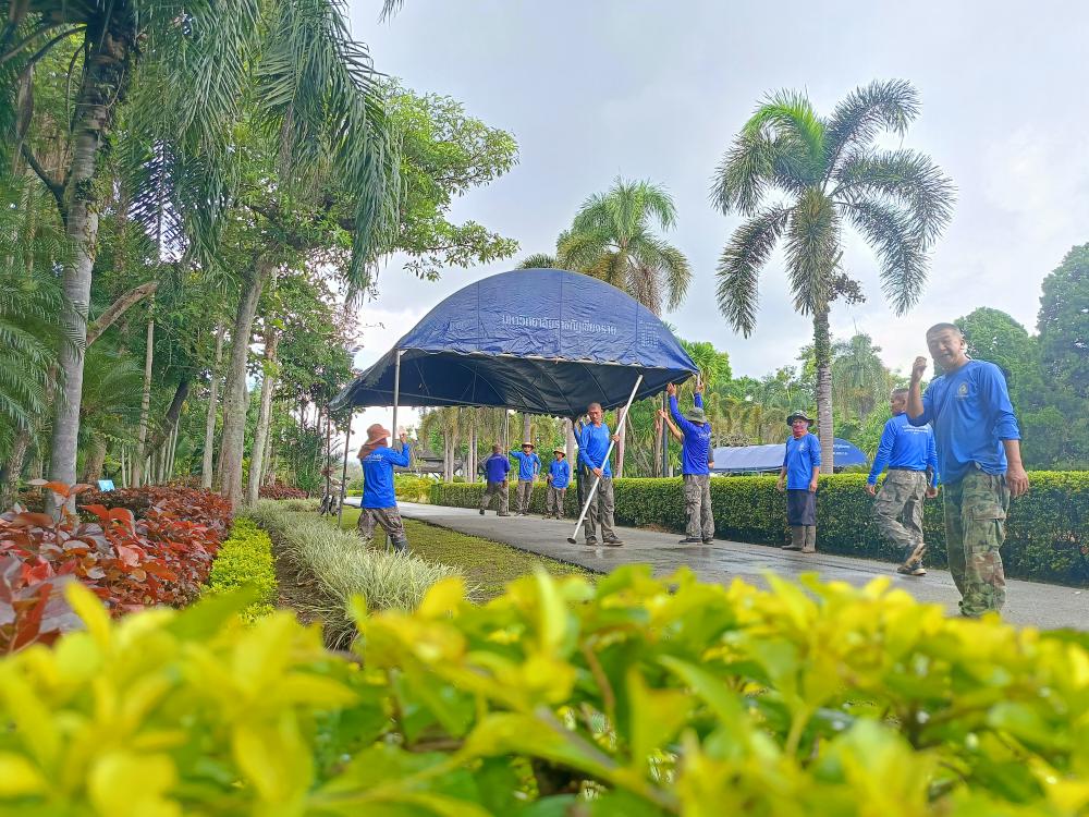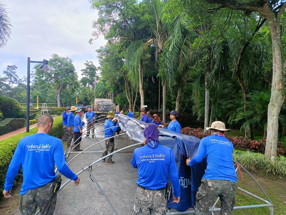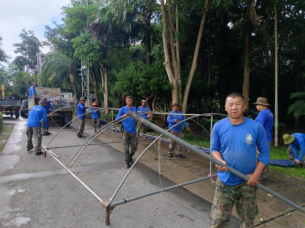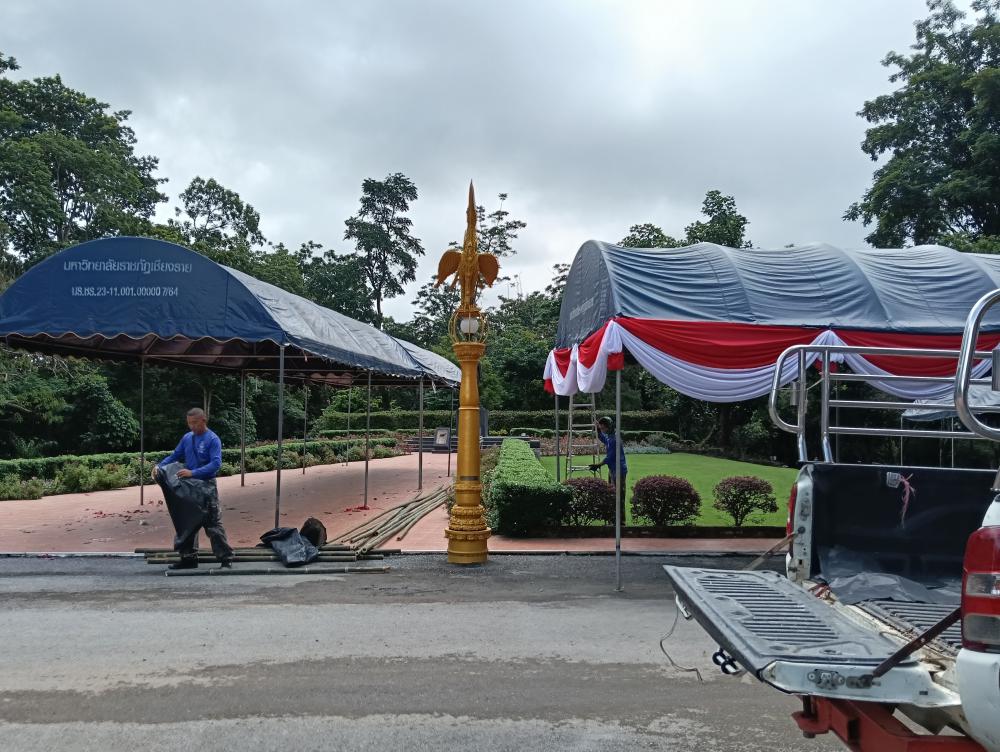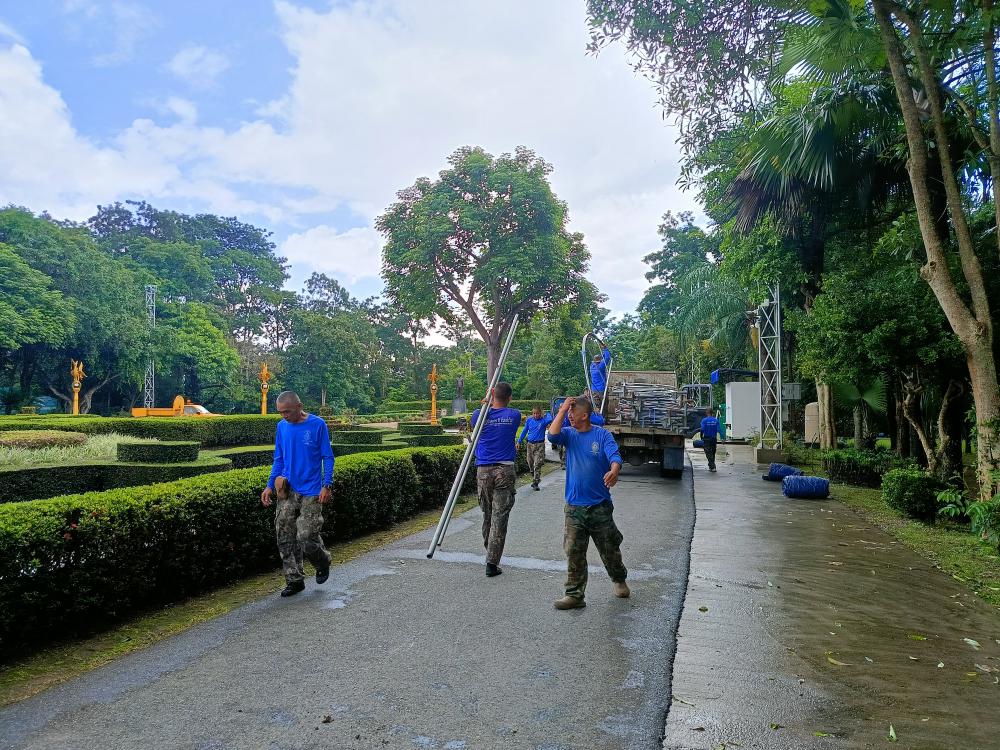 กองบริหารกายภาพฯ เก็บของต่างๆ หลังเสร็จสิ้นพิธี ทานหาแม่ฟ้าหลวง