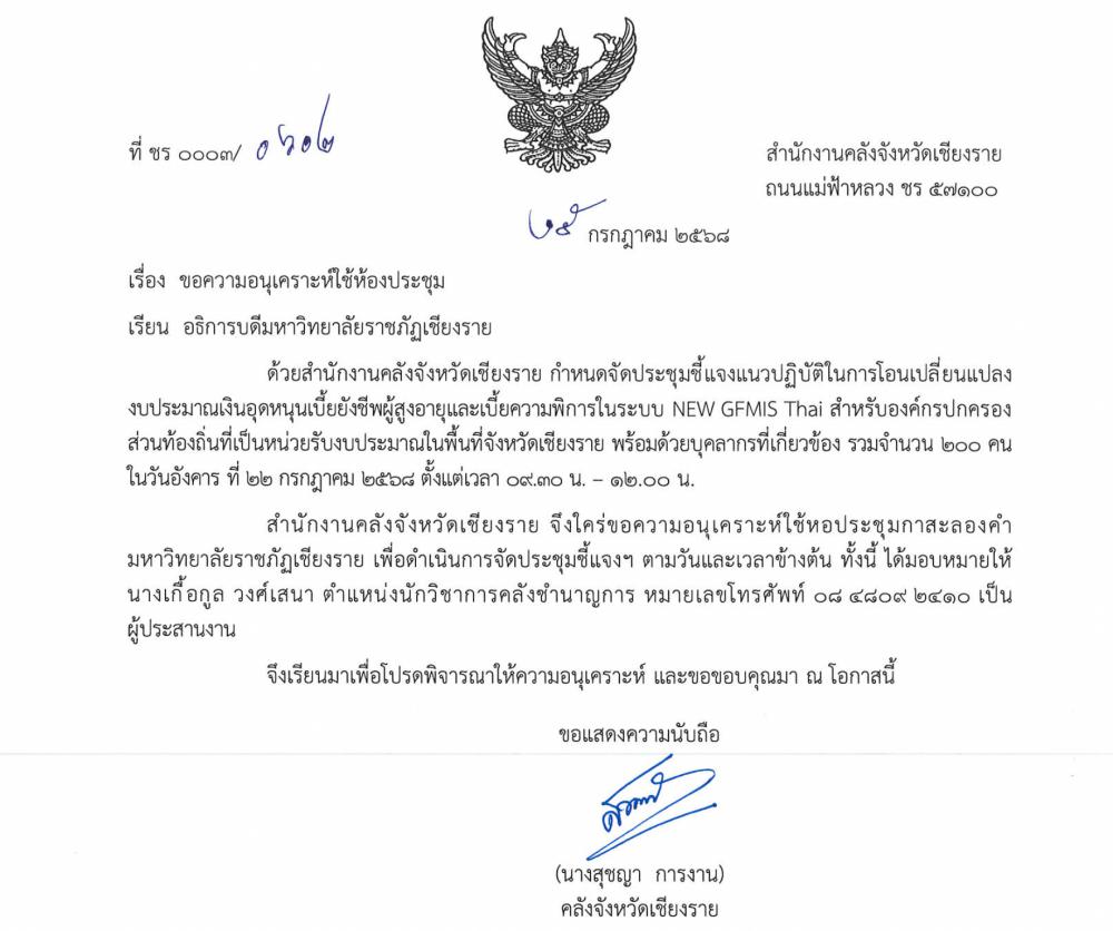 จัดสถานที่หอประชุมกาสะลองคำ สำนักงานคลังจังหวัดเชียงราย