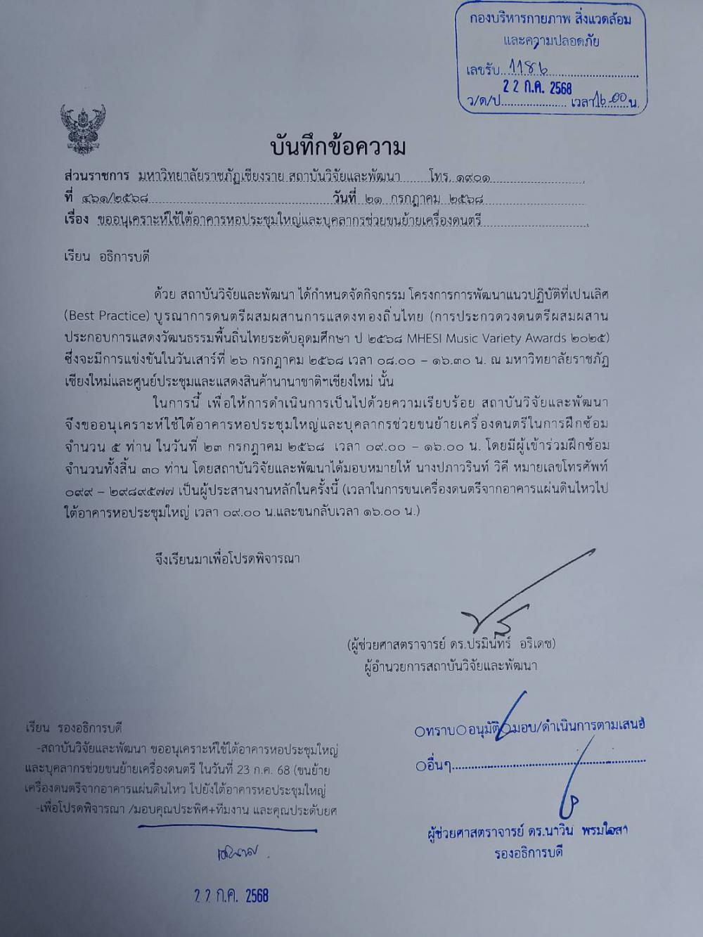 สถาบันวิจัยและพัฒนา ขนย้ายเครื่องดนตรีจากอาคารแผ่นดินไหวไปใต้ถุนหอประชุมใหญ่ วันที่ 23 ก.ค. 2568