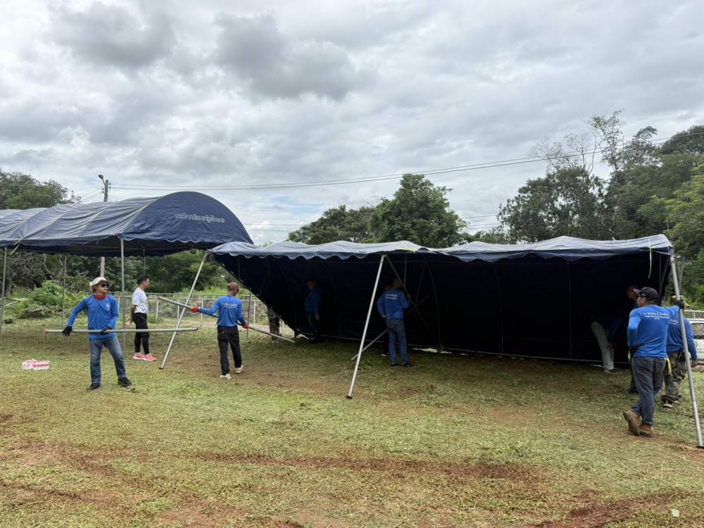 ขนเต้นท์ จำนวน 2 หลัง ไปยังโรงเรียนสาธิตฯ