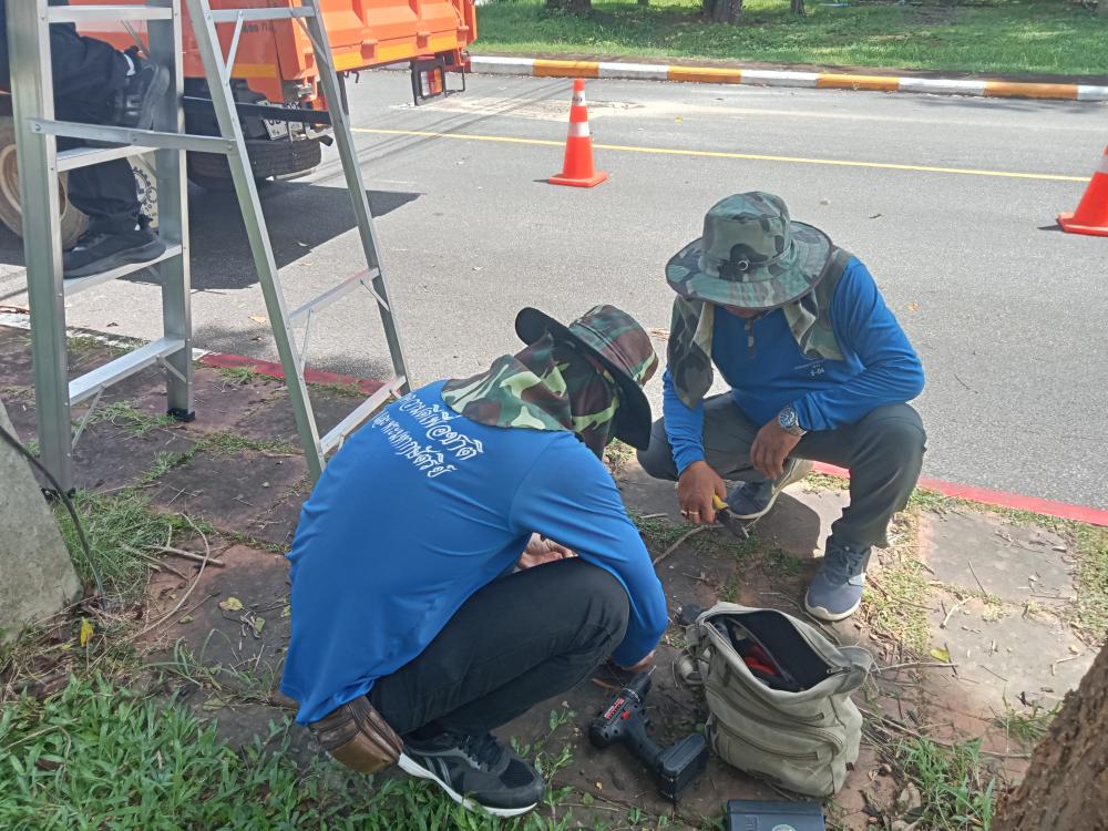 ตรวจสอบและซ่อมแซมไฟแดง จุดไฟแดงที่ 1 แยกสำนักงานอธิการบดี