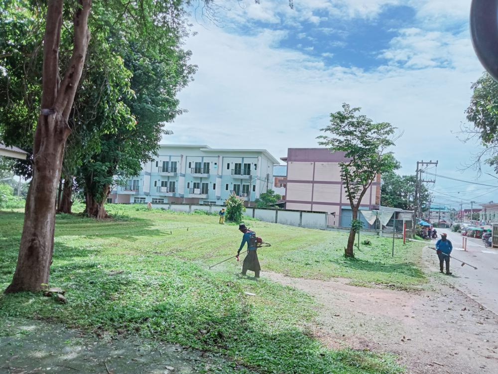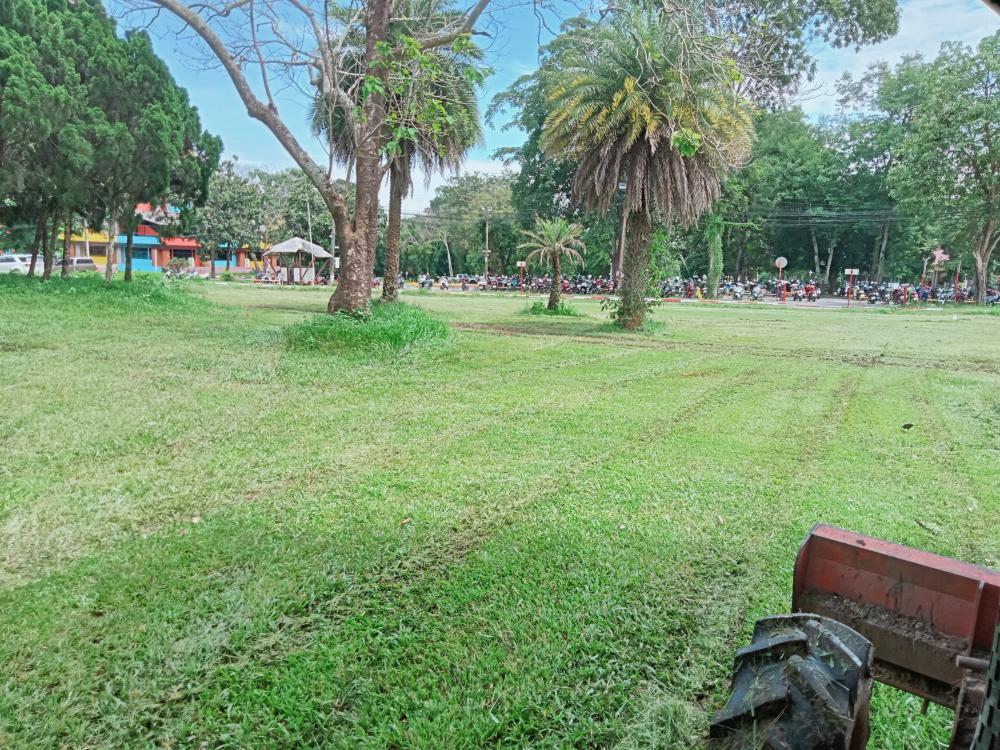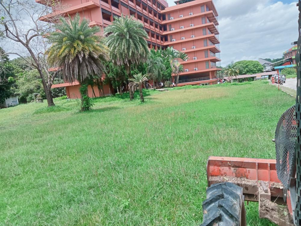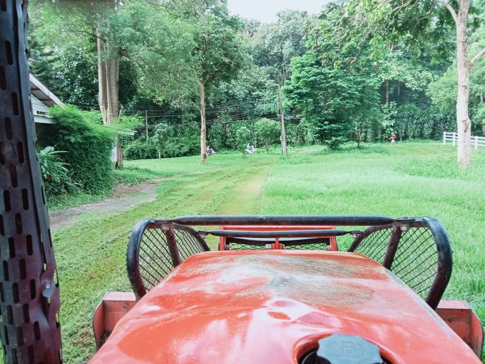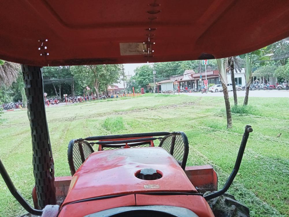 กองบริหารกายภาพฯ ขับแทรกเตอร์ตัดหญ้า ส.น.ก.โดยรอบ และลานหน้าตึก26