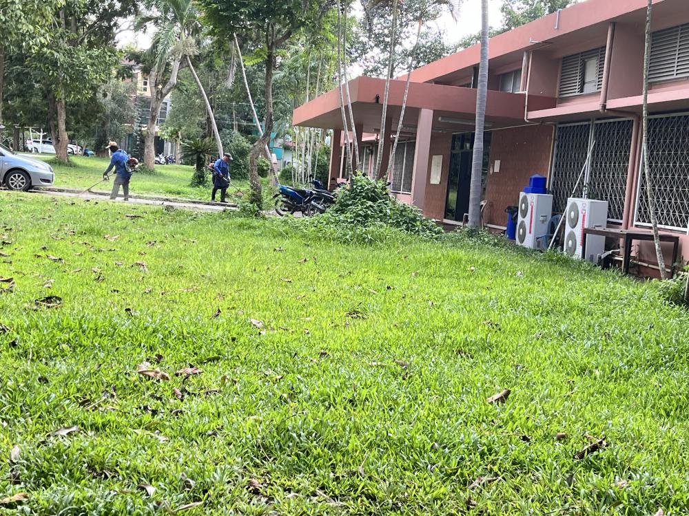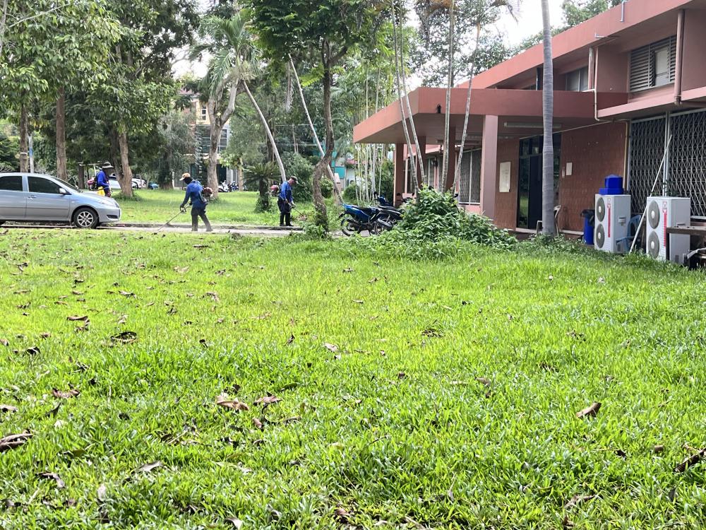 กองบริหารกายภาพฯ ตัดหญ้าติดคณะวิทยาศาสตร์และหน้าห้องประชุมสุพรรณิการ์