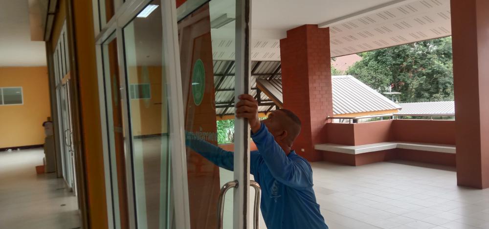 ตรวจสอบและซ่อมแซมประตูทางเข้า-ออก อาคารเรียนรวม 102