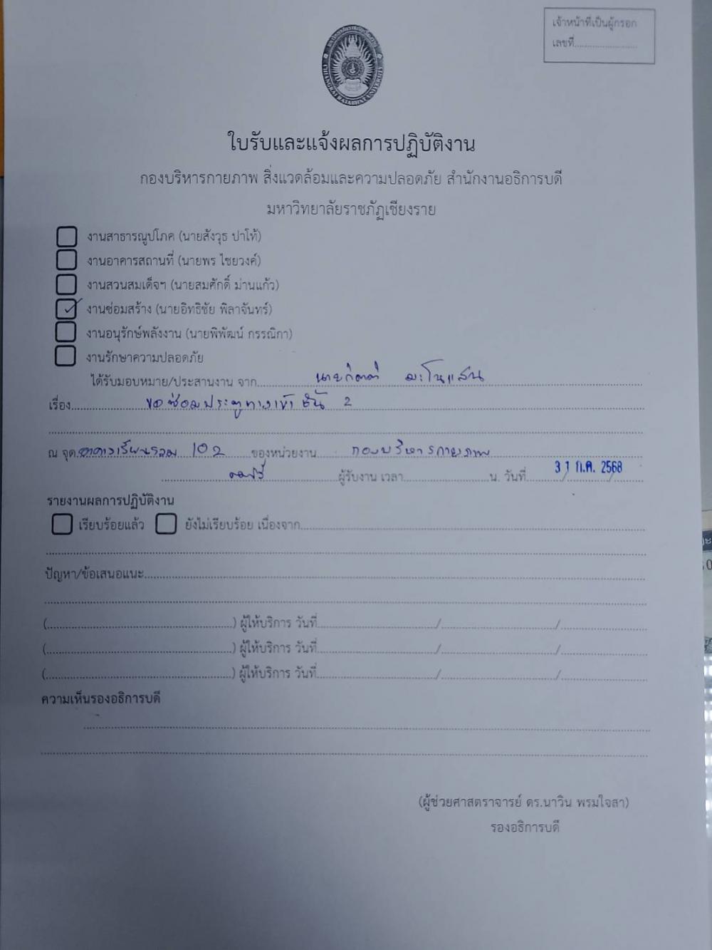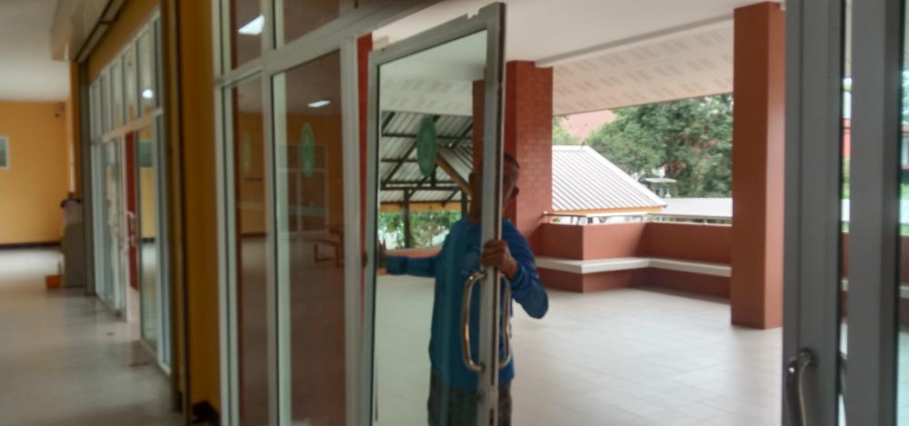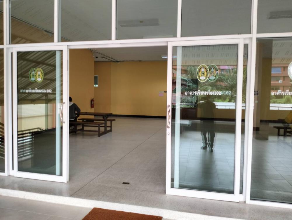 กองบริหารกายภาพฯ ประตูทางเข้า-ออก อาคารเรียนรวม 102 ชำรุด