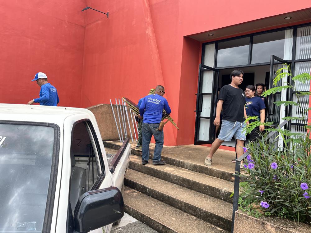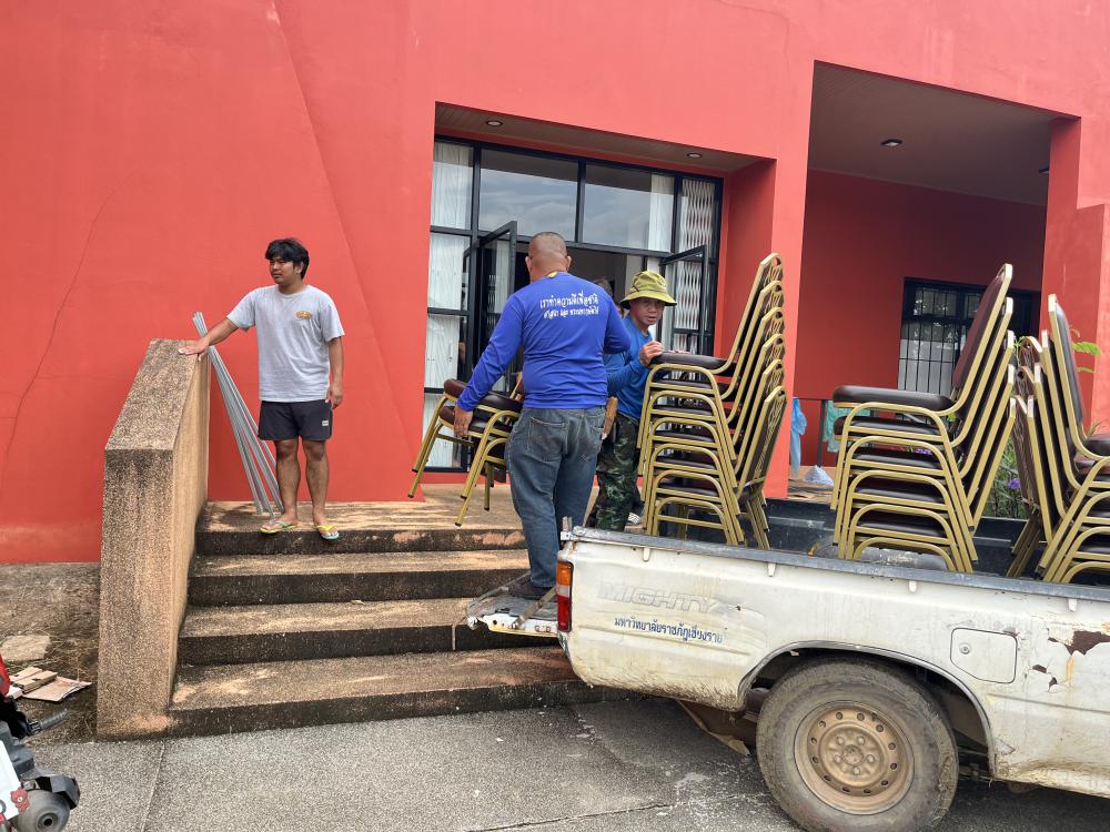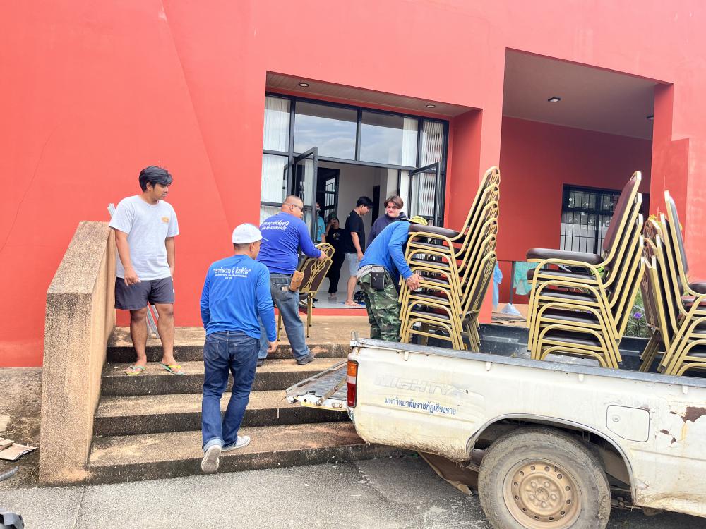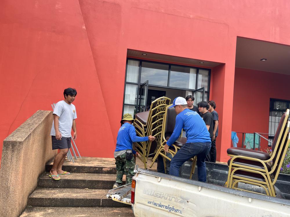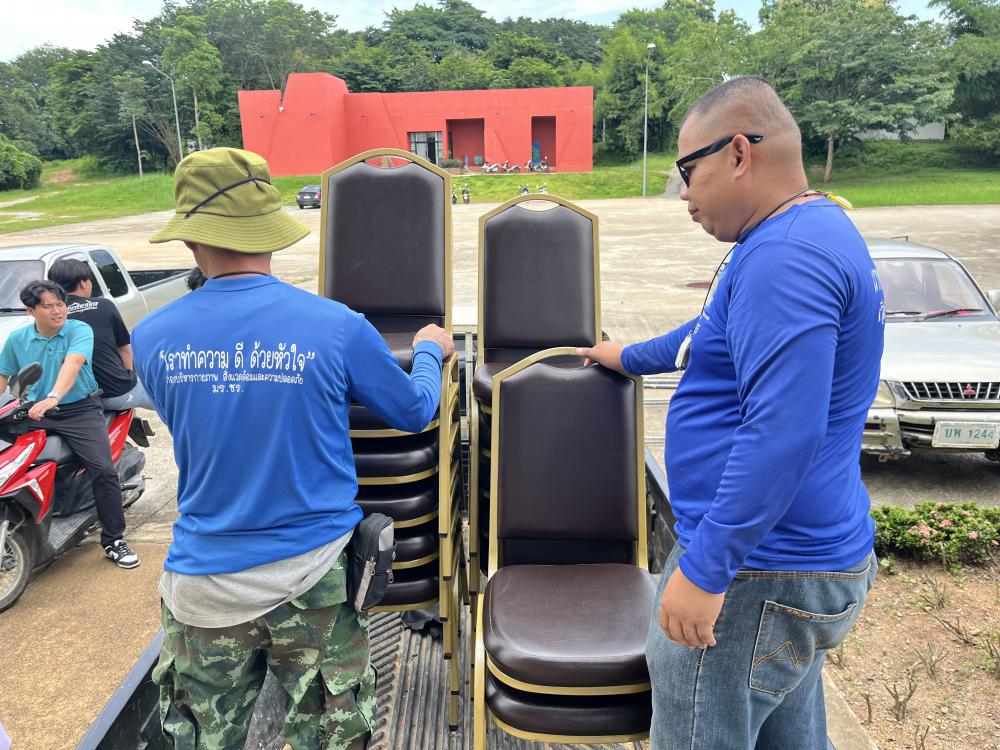 ขนเก้าอี้จากหอปัญญาร 9 ไปตึกแผ่นดินไหว
