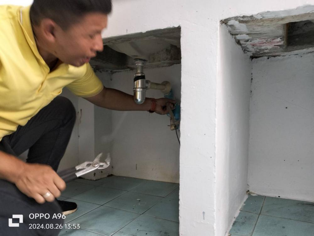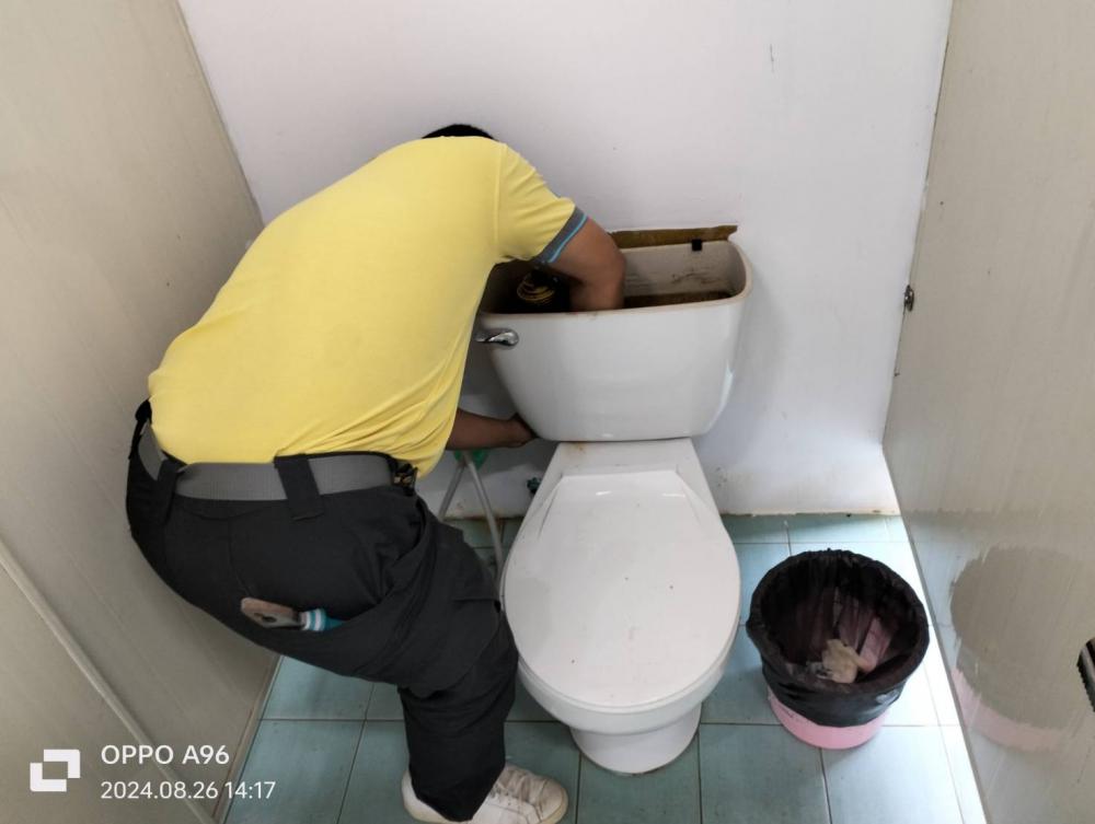 ตรวจสอบและซ่อมแซมสายน้ำดีของชักโครกภายในอาคารสำนักศิลปะและวัฒนธรรม (มีวัสดุแล้ว)