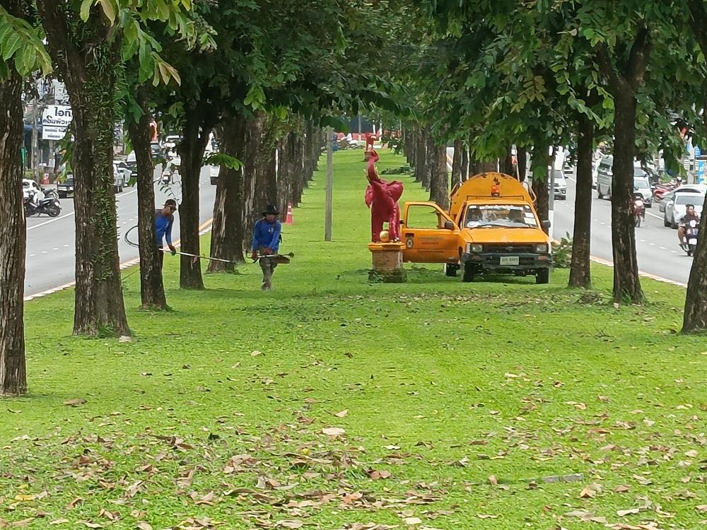 ตัดหญ้าเกาะกลางถนน