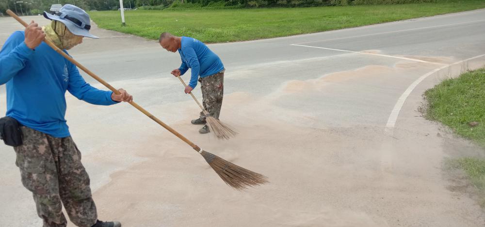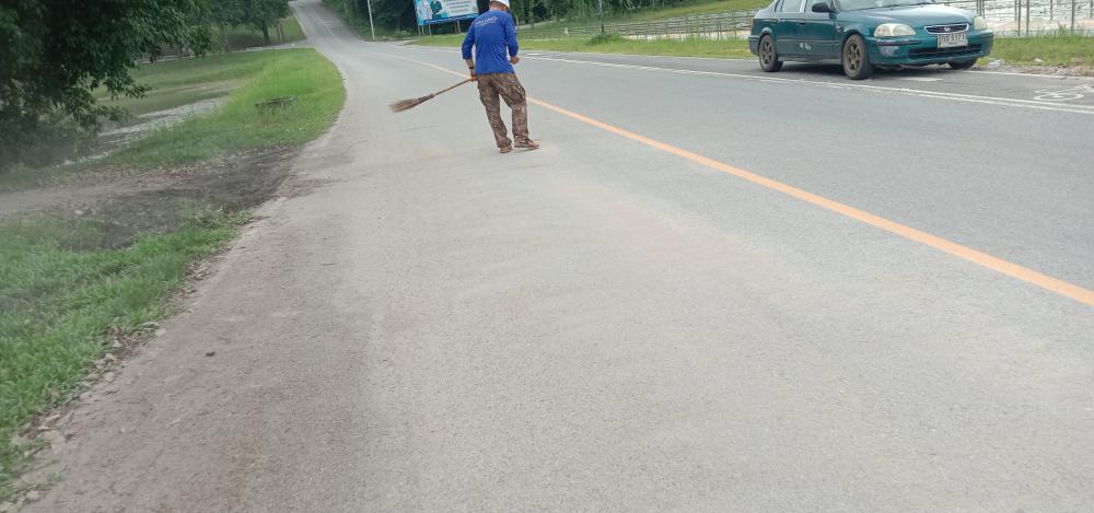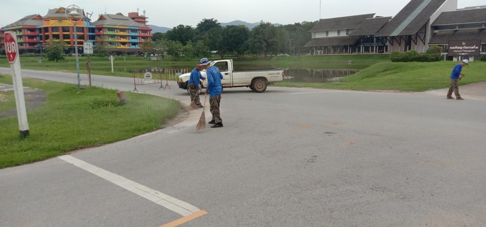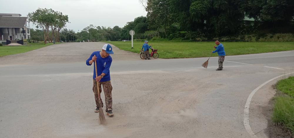 กวาดทำความสะอาด เศษกรวดทราย บริเวณสี่แยก หอปรัชญา