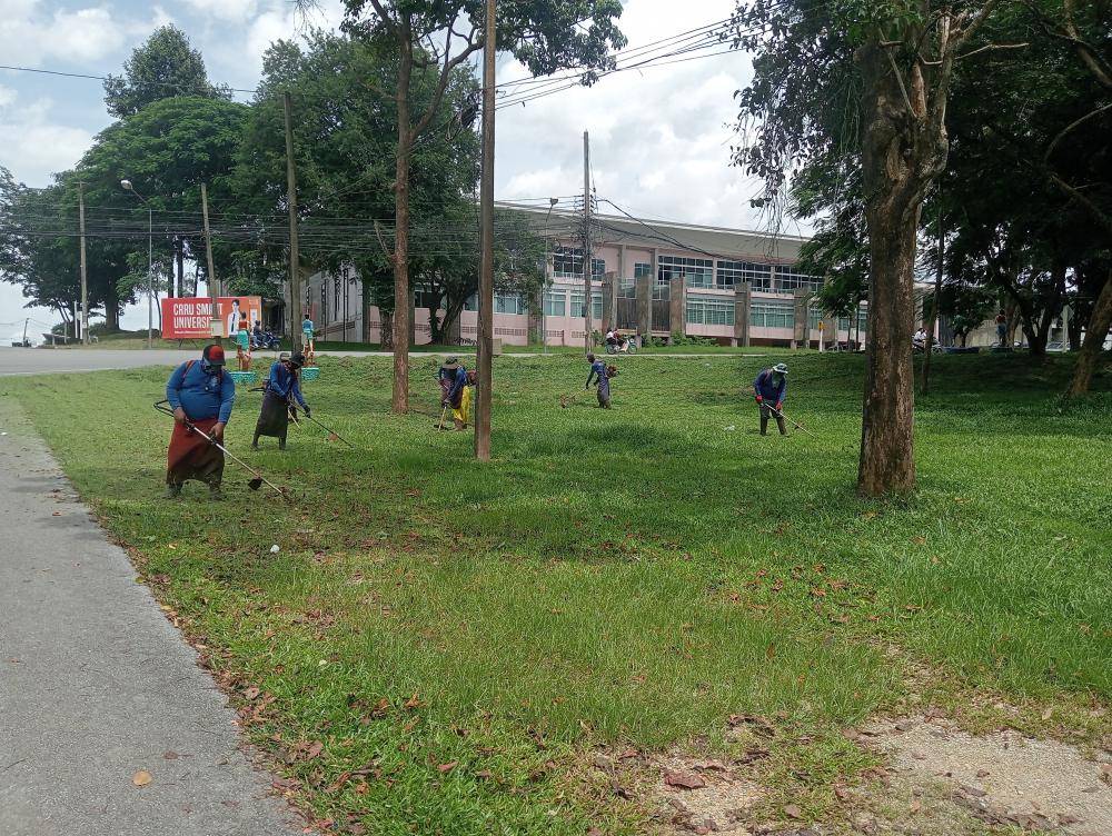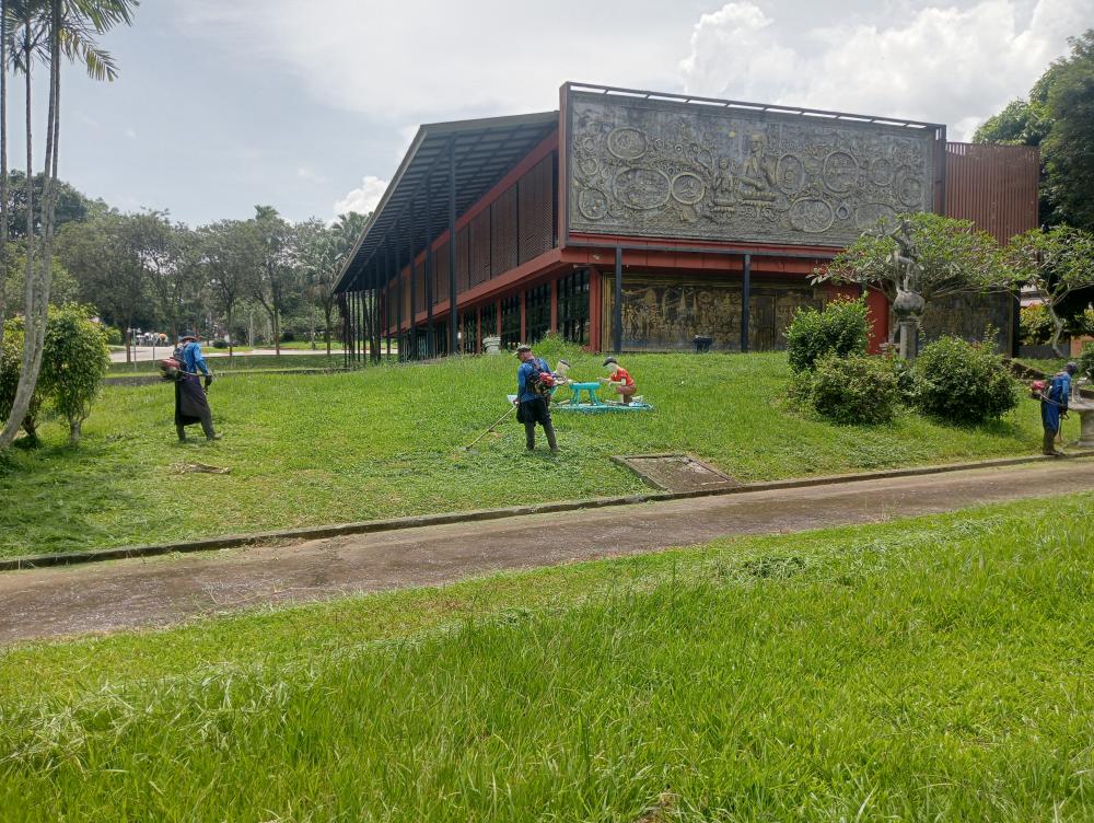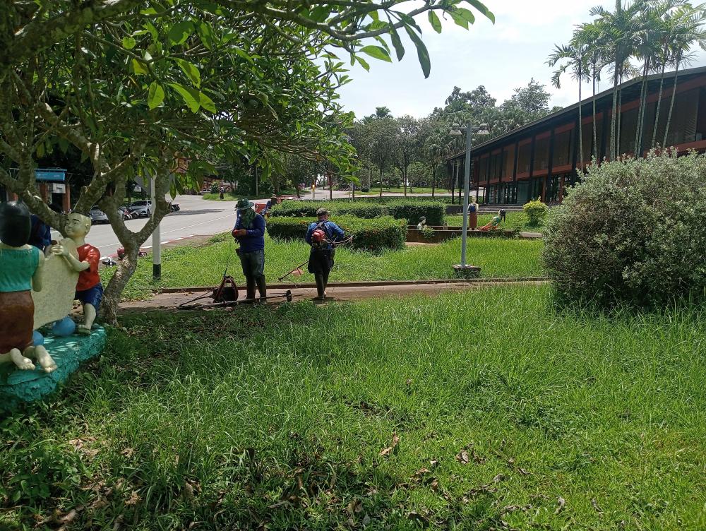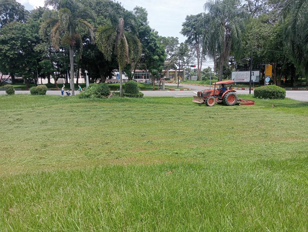 กองบริหารกายภาพฯ ตัดหญ้าข้างสนาม ตึก Item