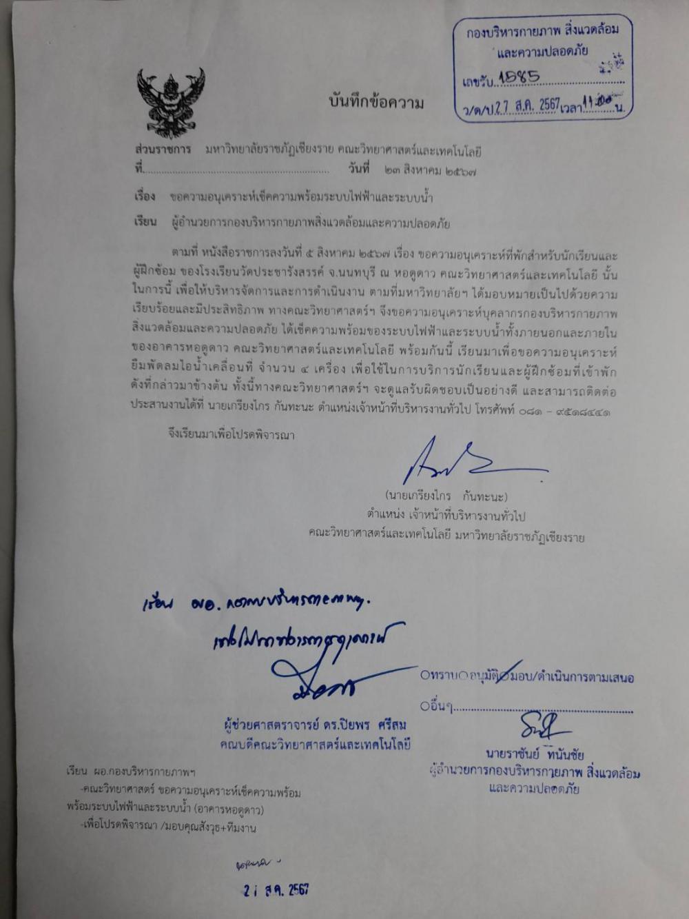 คณะวิทยาศาสตร์ฯ ขออนุเคราะห์ตรวจเช็คความพร้อมระบบไฟฟ้าและระบบน้ำของอาคารหอดูดาว