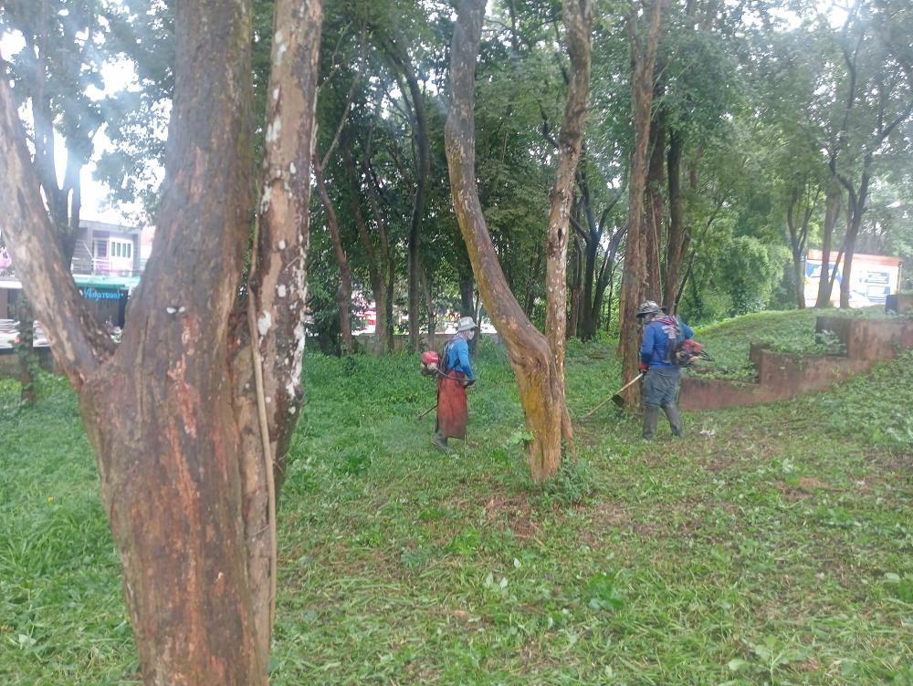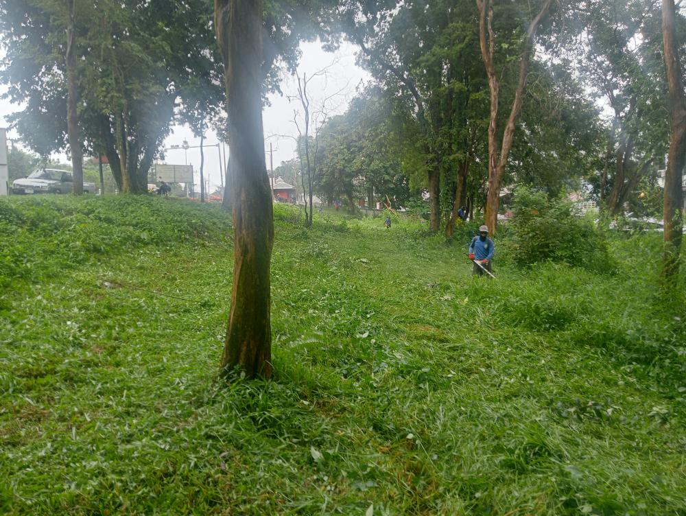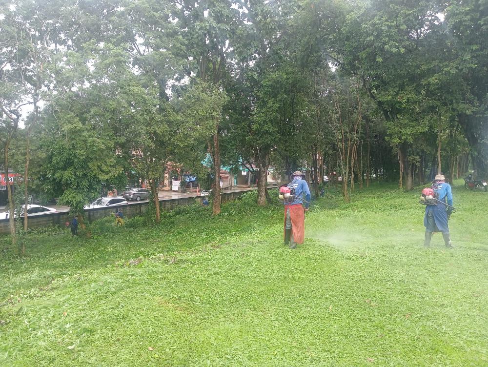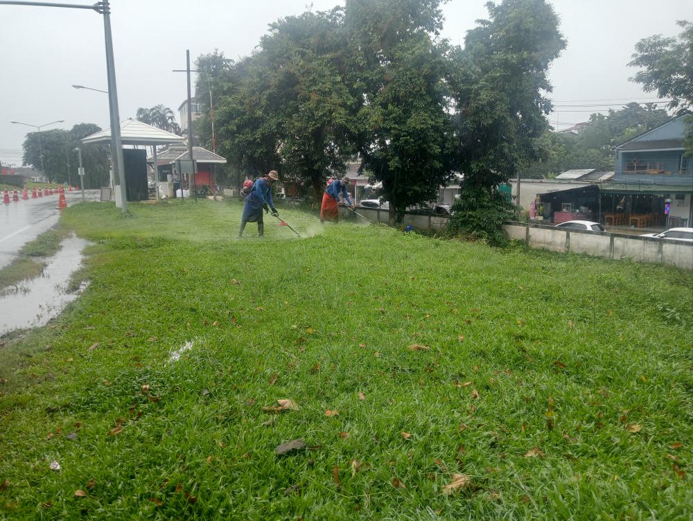 ตัดหญ้าด้านข้างประตู1ริมรั้ว