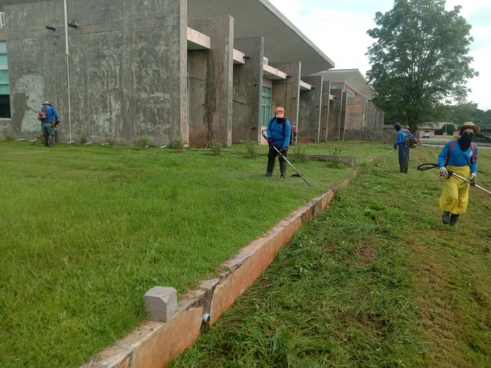 ตัดหญ้าโดยรอบทำงานบริหารงานกลาง