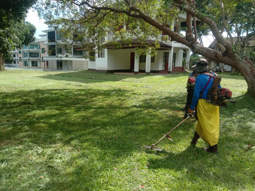 กองบริหารกายภาพฯ ตัดหญ้า สนามกีฬา โรงยิม ตึกครุศาสตร์ บ้านพัก