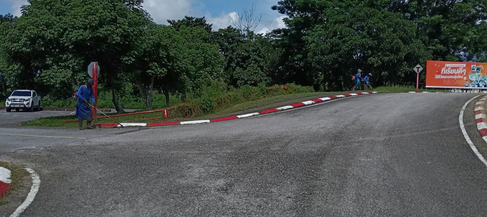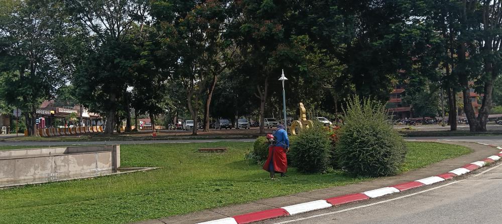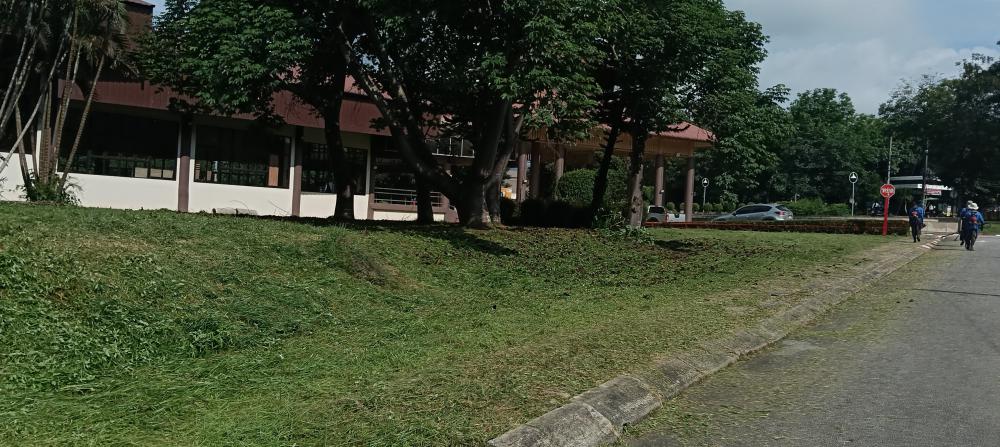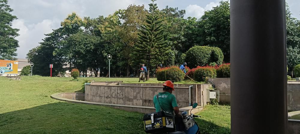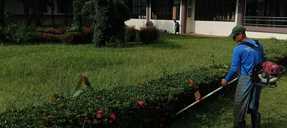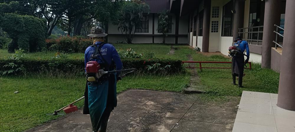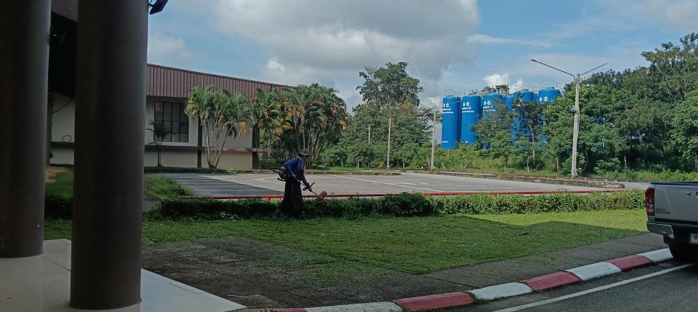 ตัดหญ้าด้านหน้าหอประชุมใหญ่