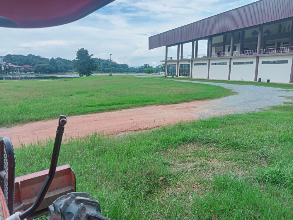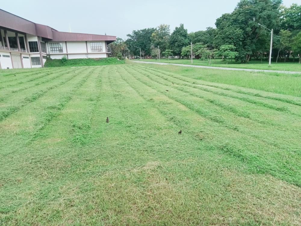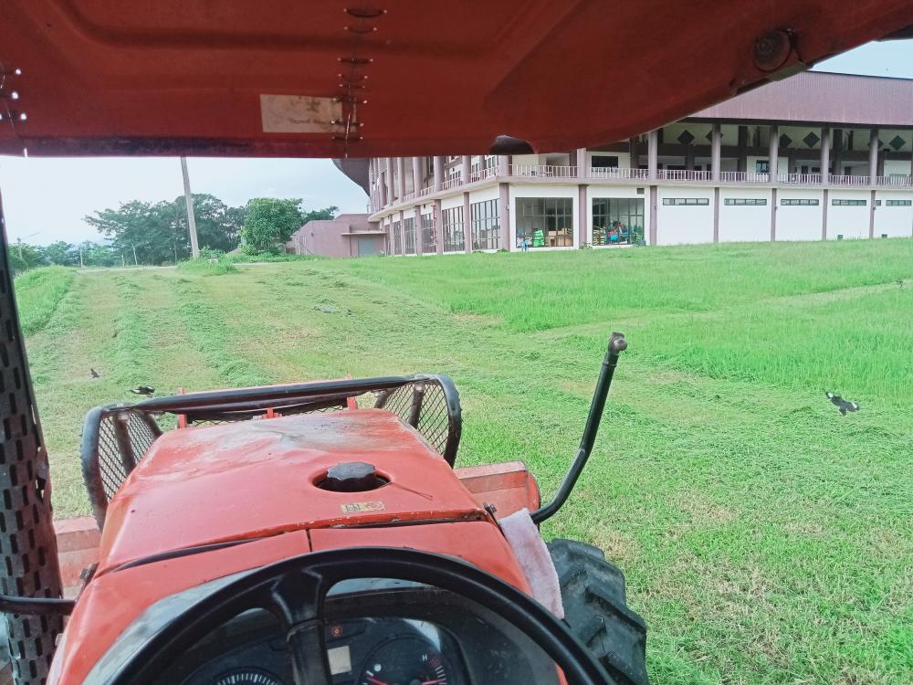 กองบริหารกายภาพฯ ขับแทรกเตอร์ตัดหญ้าป่าภูมิลักษณ์ และรอบหอประชุมใหญ่