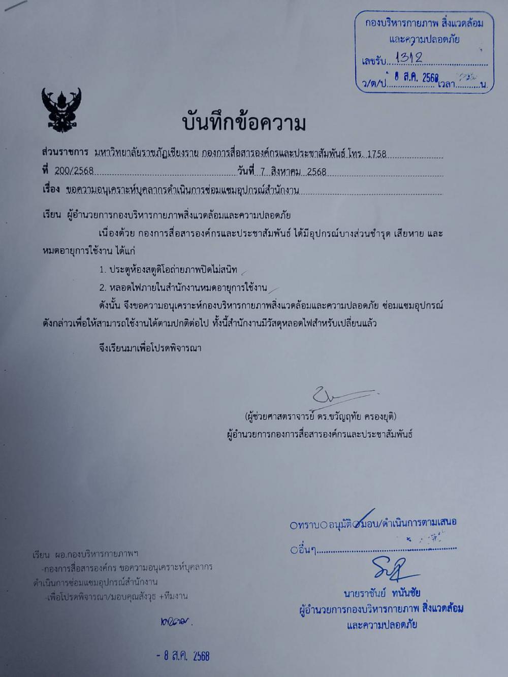 รับแจ้ง: 14 สิงหาคม 2568