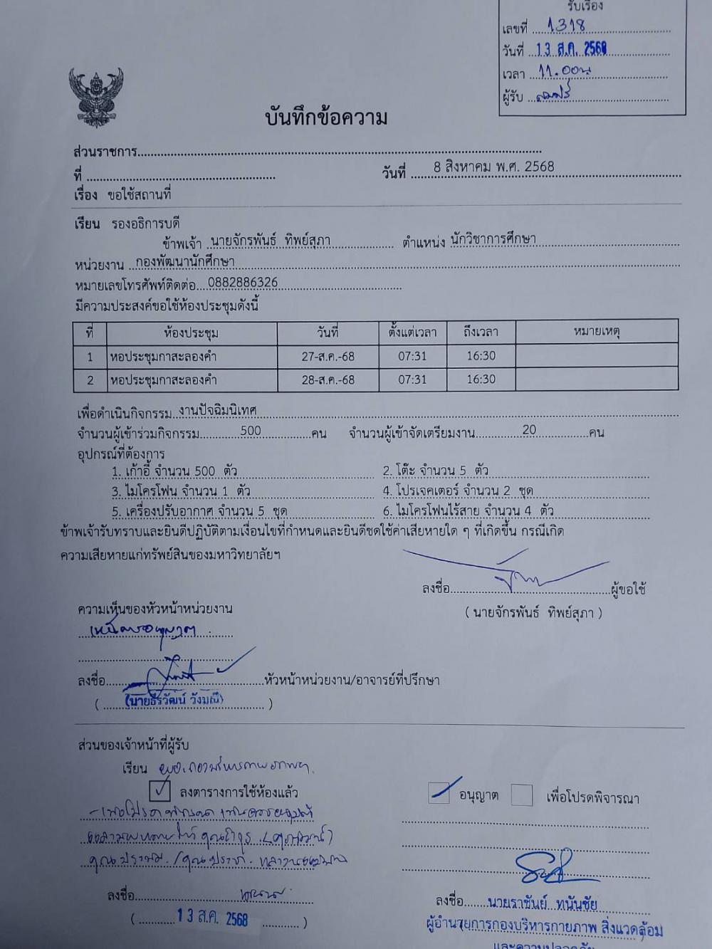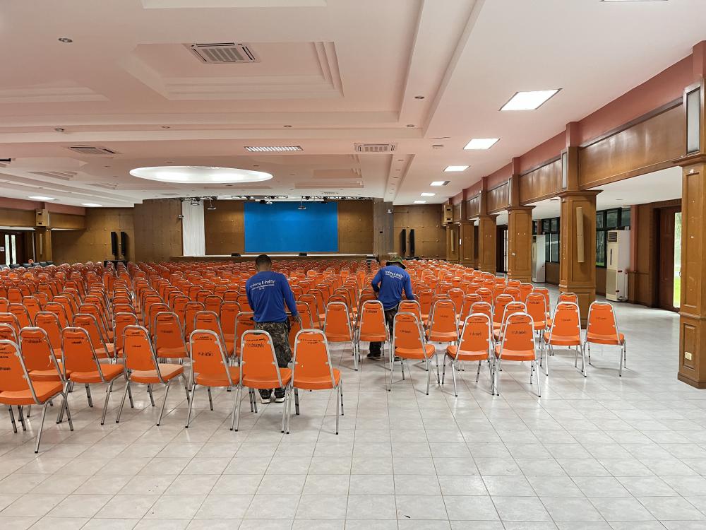 กองพัฒนานักศึกษา จัดสถานที่หอประชุมกาสะลองคำ งานปัจฉิมนิเทศ วันที่ 27-28 ส.ค. 2568