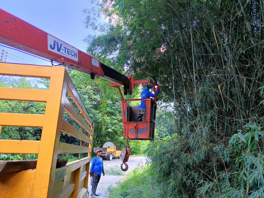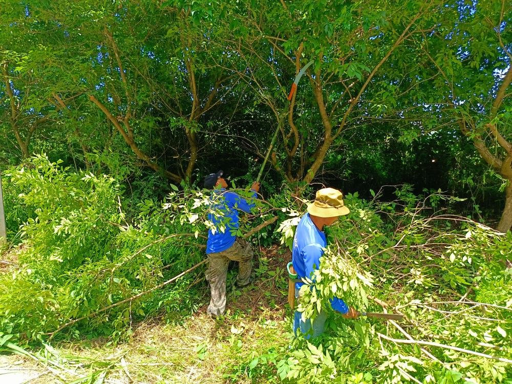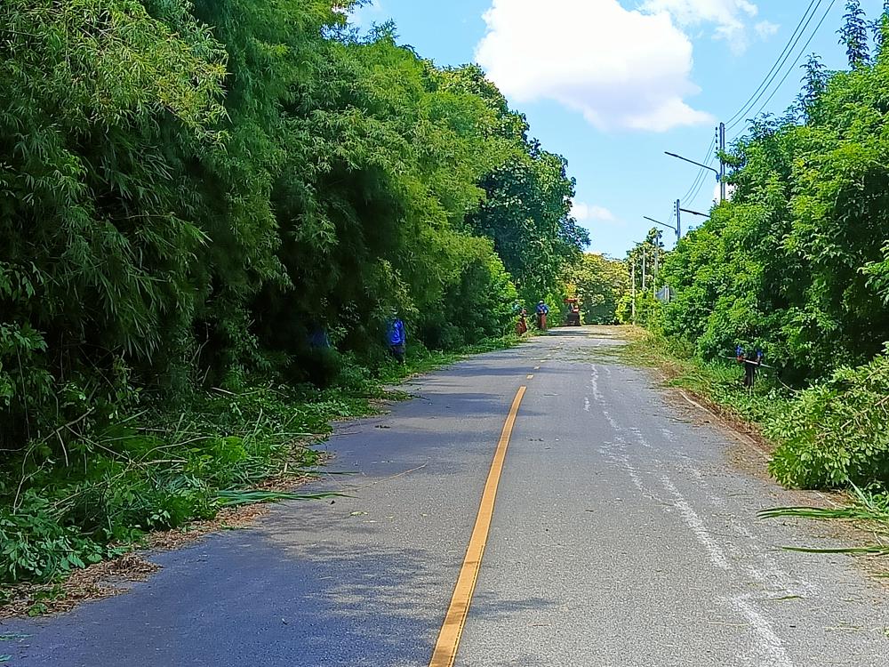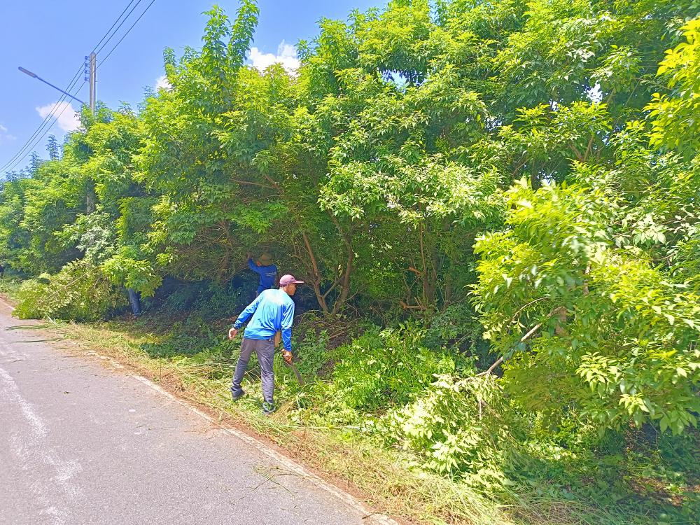 ตัดหญ้าและตัดแต่งต้นไม้ริมถนน ทาง ขึ้นไป โรงกัญชาเก่า