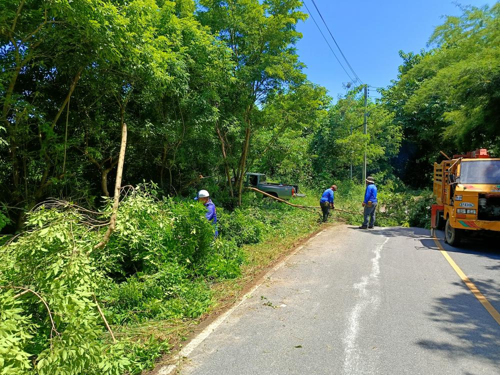 กองบริหารกายภาพฯ ตัดหญ้าและตัดแต่งต้นไม้ริมถนน ทางขึ้นไป โรงกัญชาเก่า
