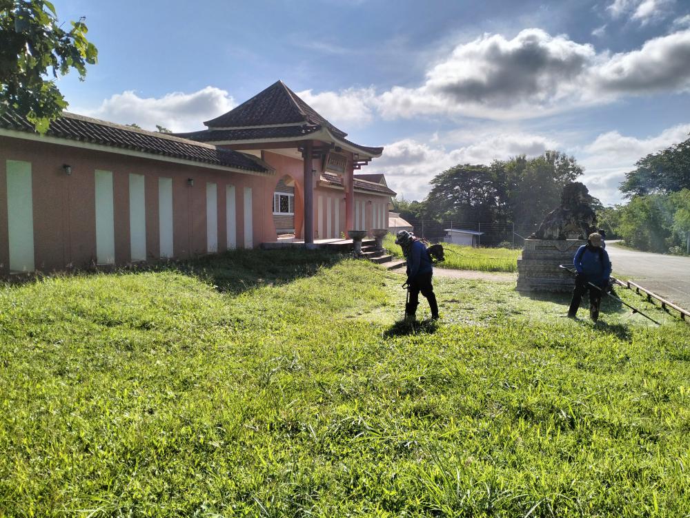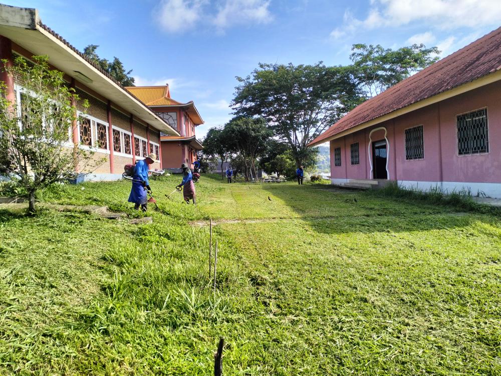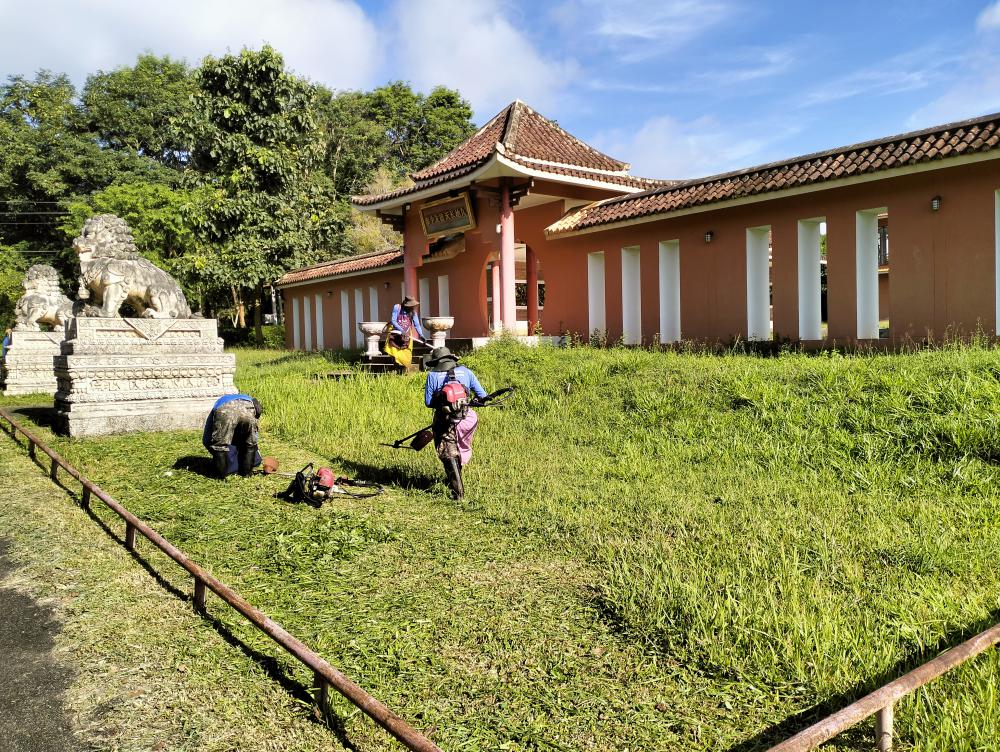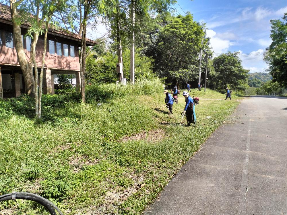 ตัดหญ้าอาคารมิตรภาพไทย- จีนและอาคารชาติพันธุ์