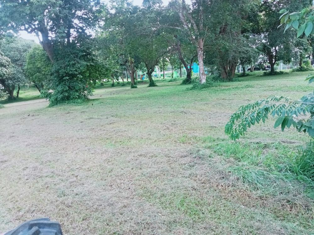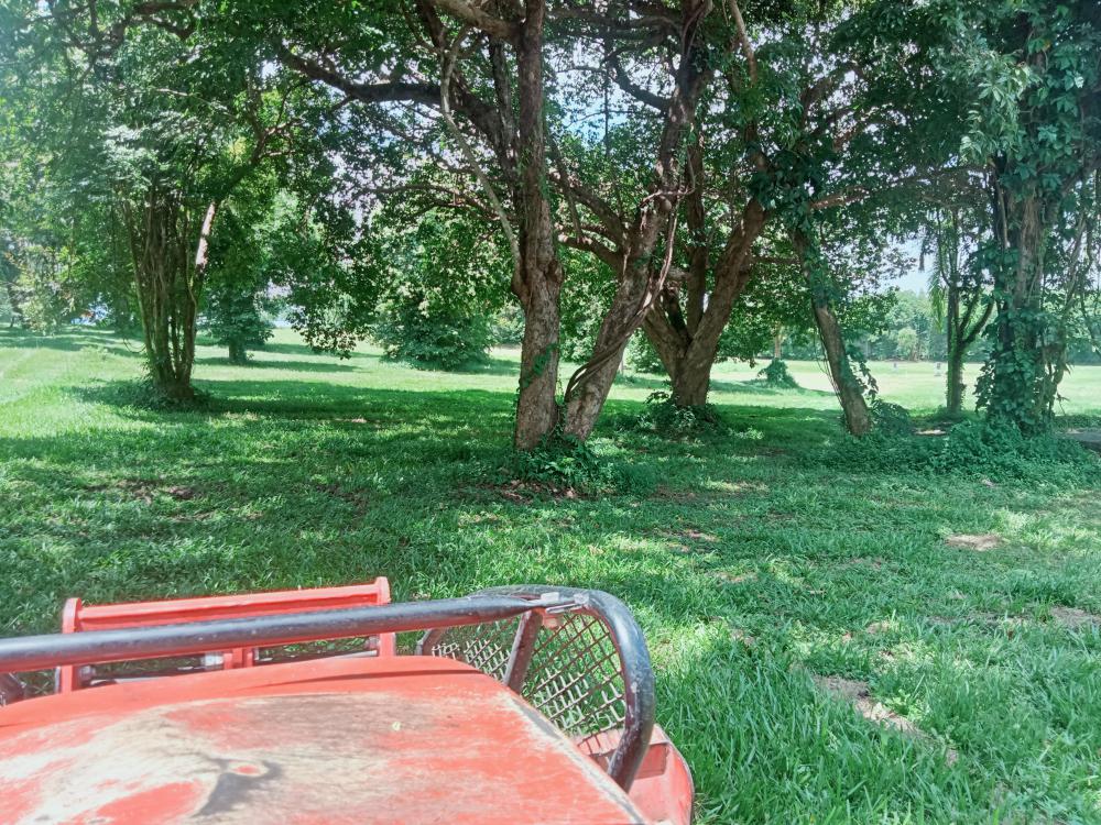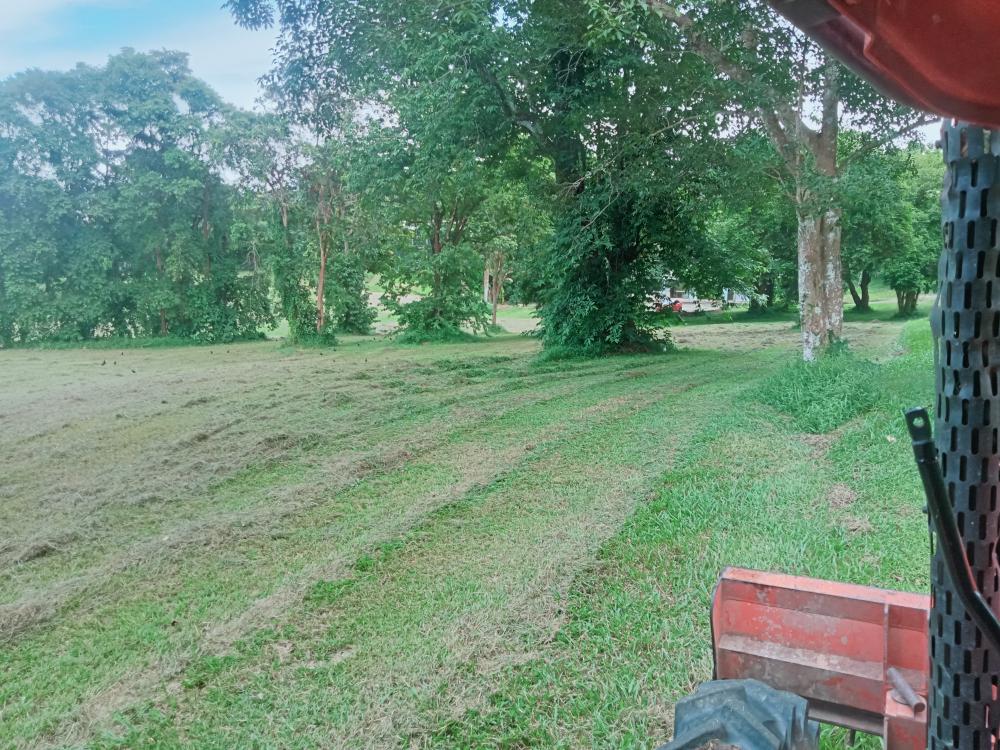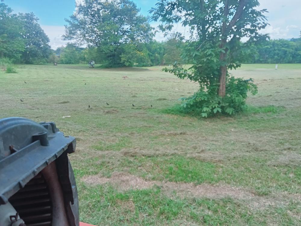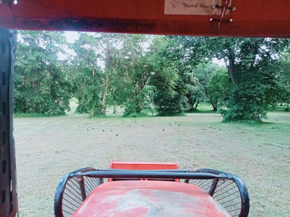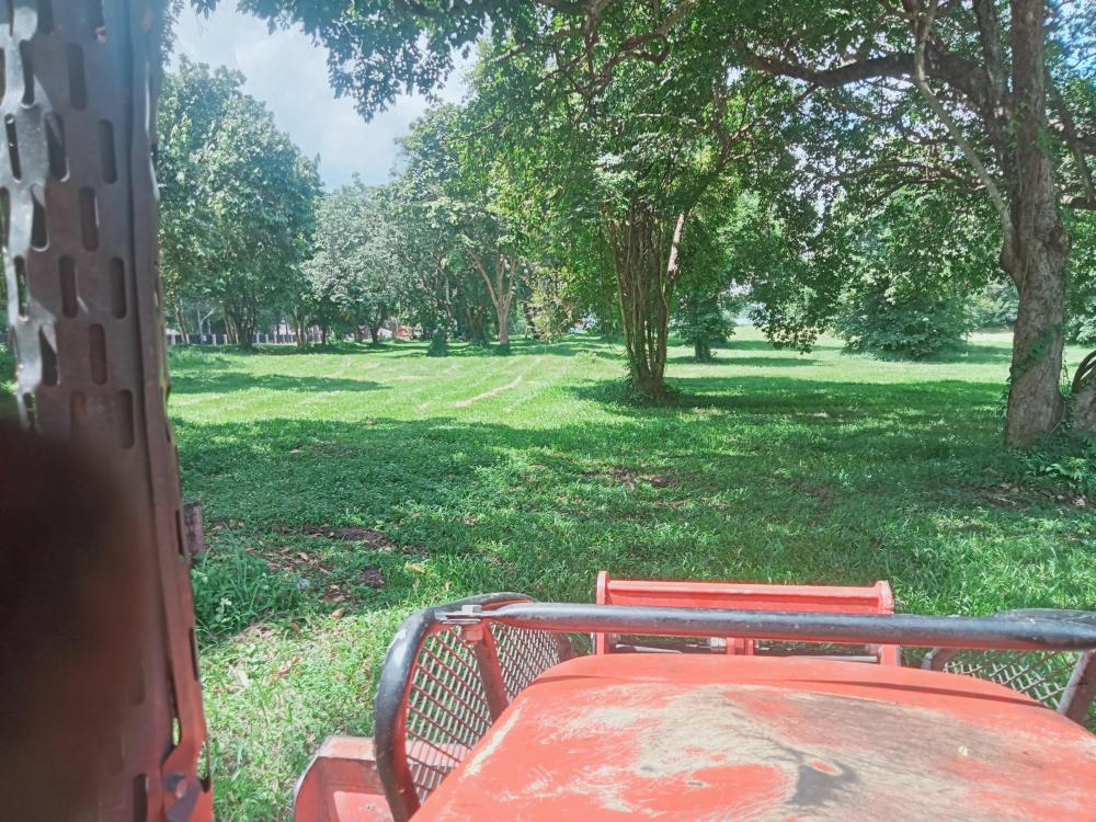 ขับแทรกเตอร์ตัดหญ้าหลังศูนย์สุขภาพ