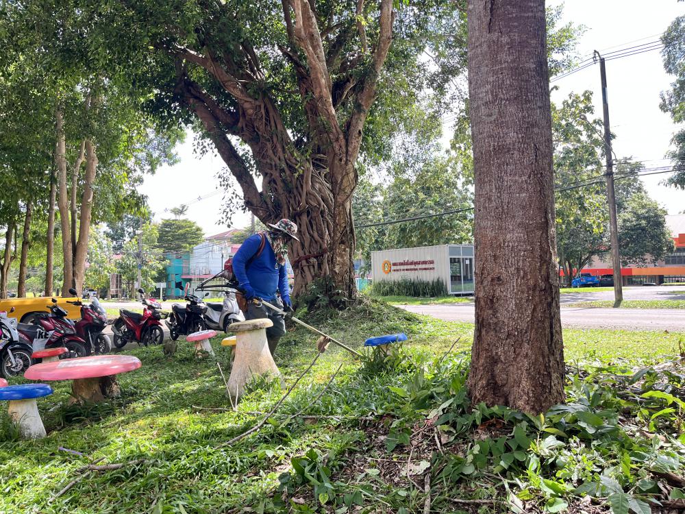 ตัดหญ้าบริเวณอาคารเรียนนิเทศศาสตร์