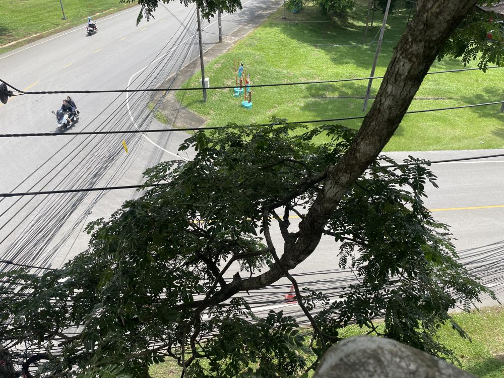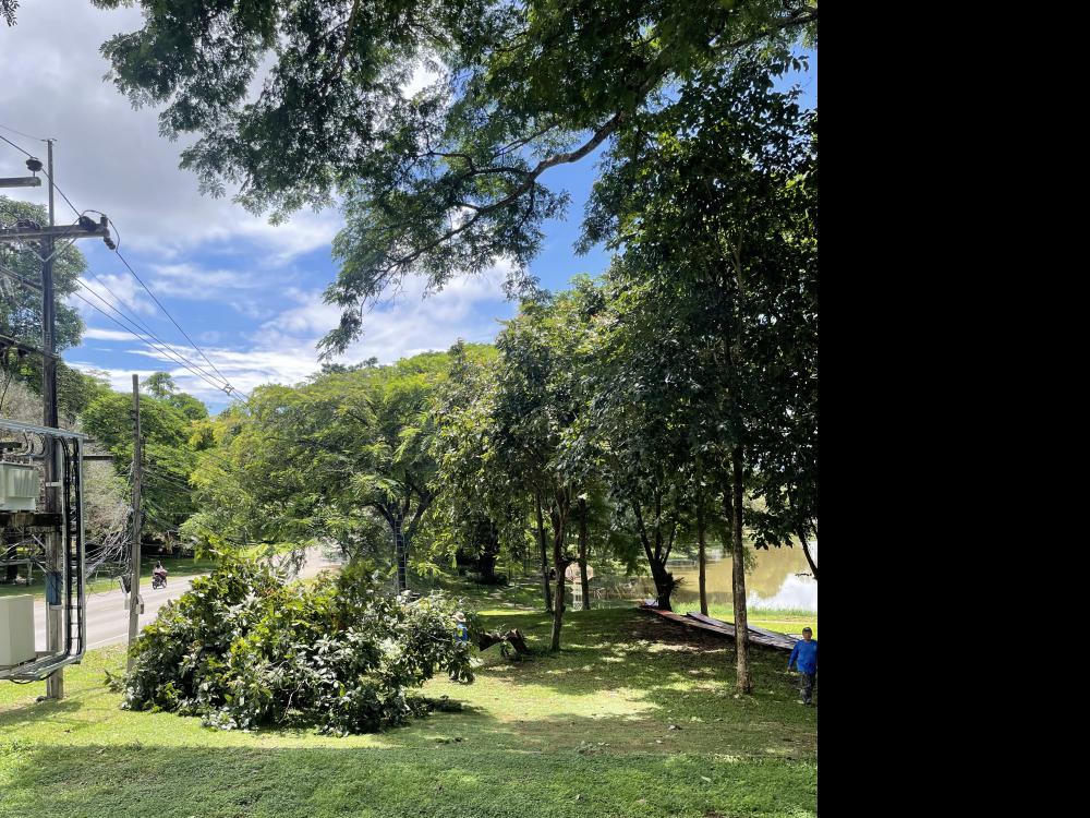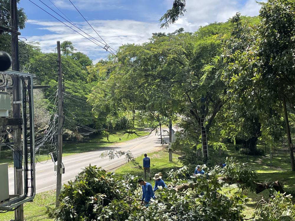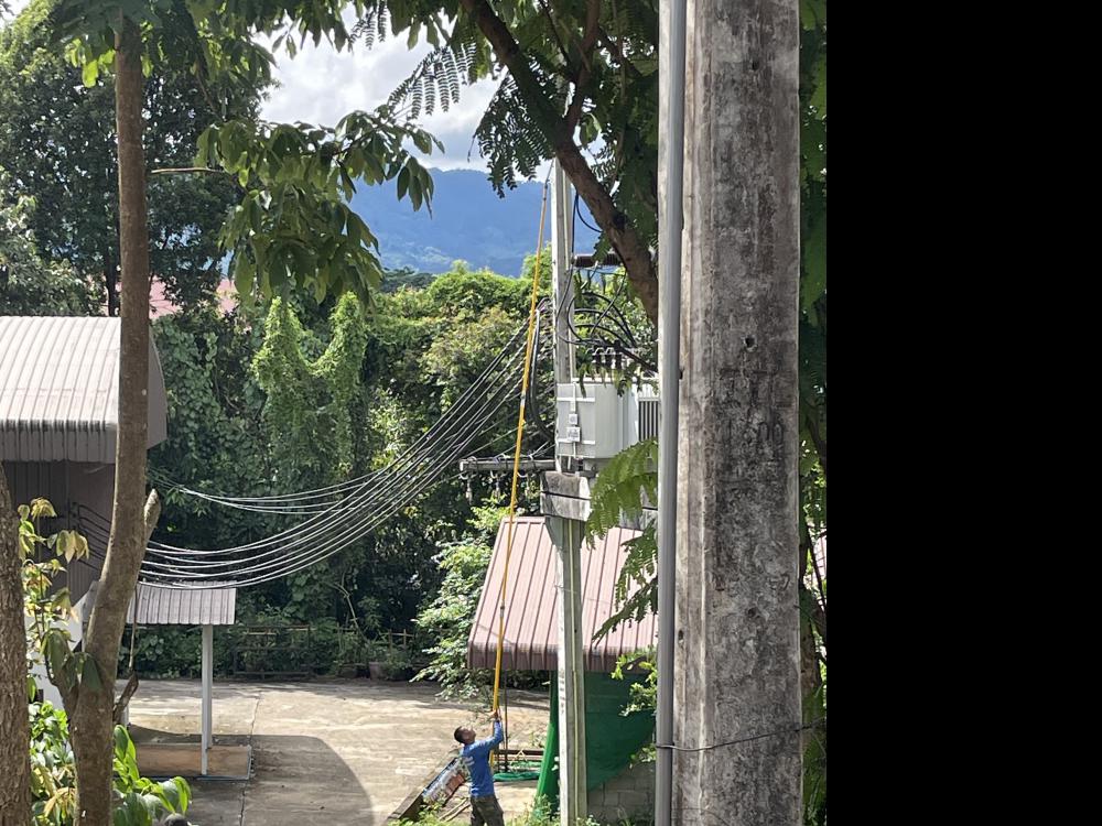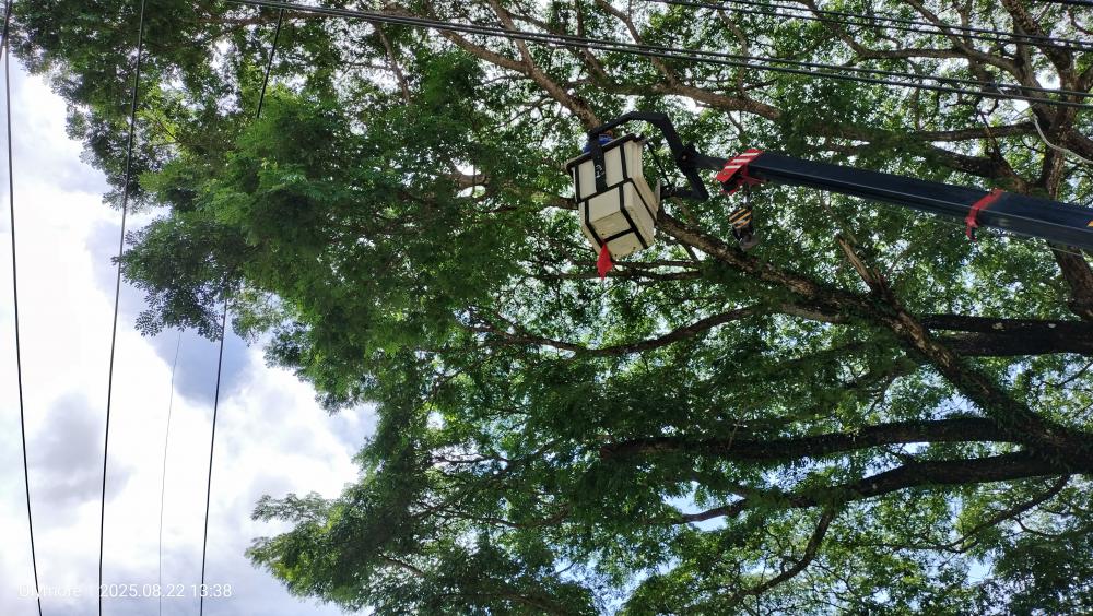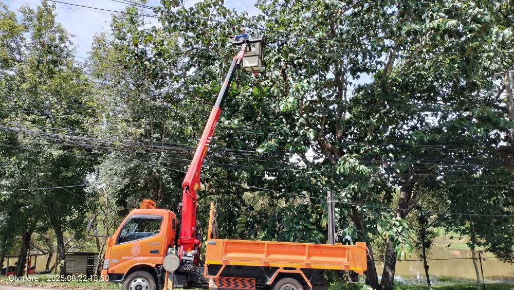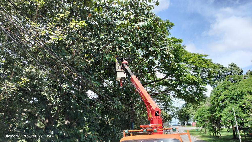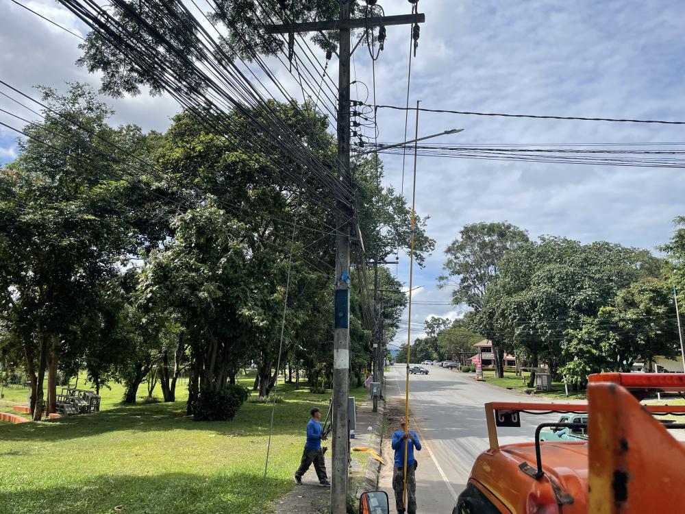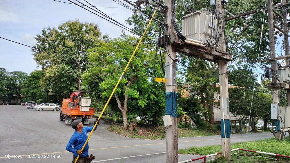 ตรวจเช็คเคลียร์กิ่งไม้แนวสายไฟแรงสูงตั้งแต่หน้าเวทีกลางแจ้งถึงหลังอาคาร รปศ