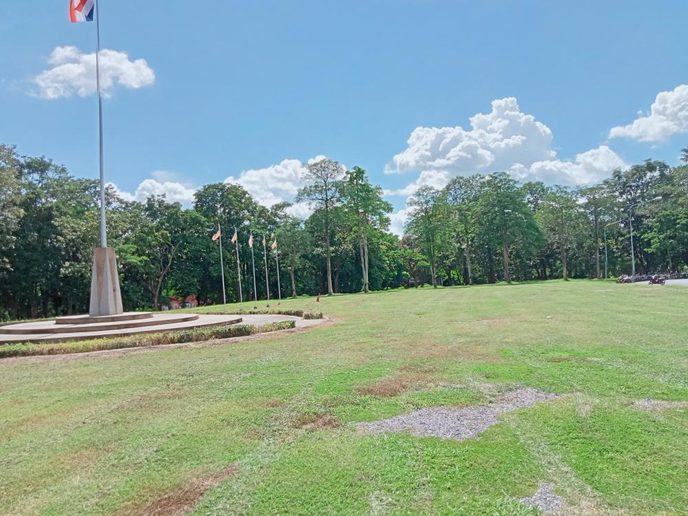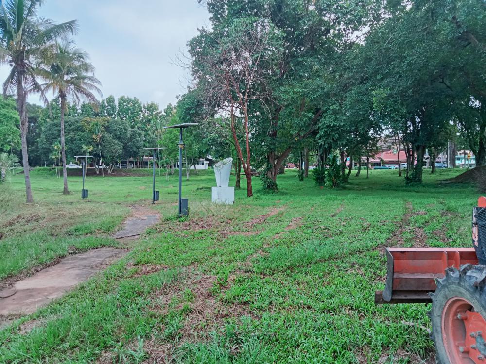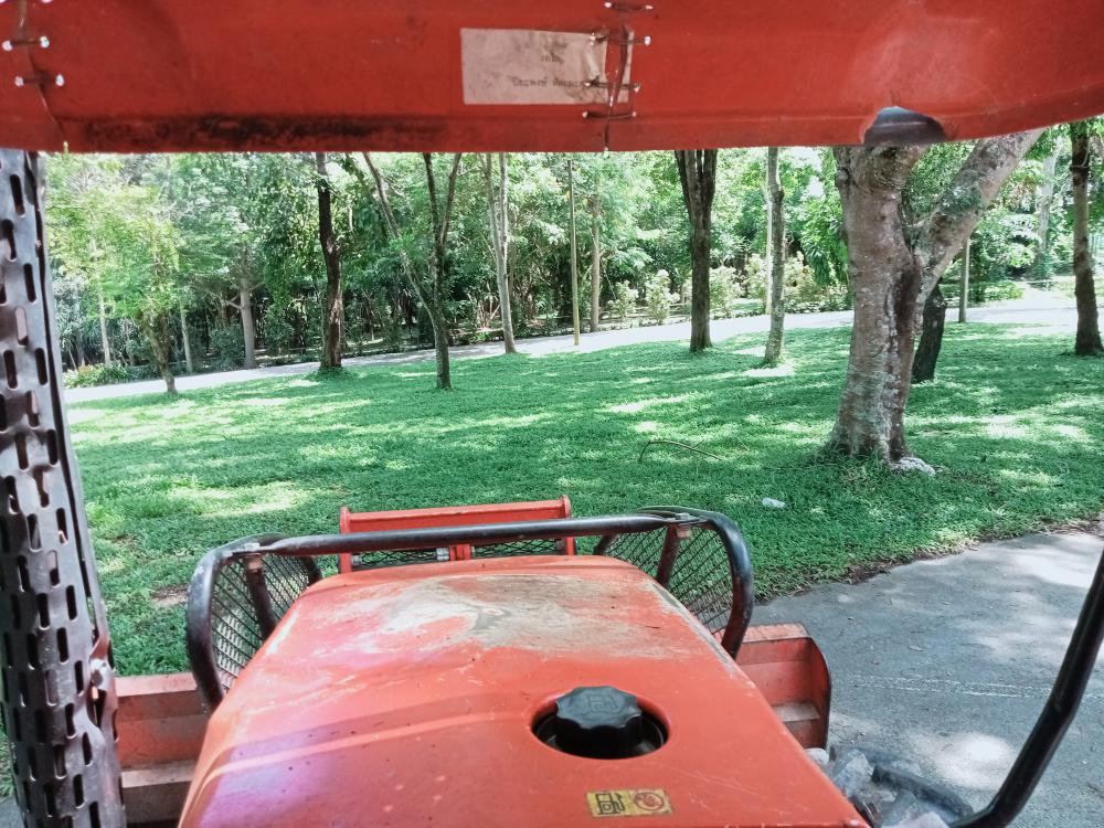 ขับแทรกเตอร์ตัดหญ้าลานหลังเวทีกลางแจ้งและหน้าเสาธง ศูนย์วัฒนธรรม