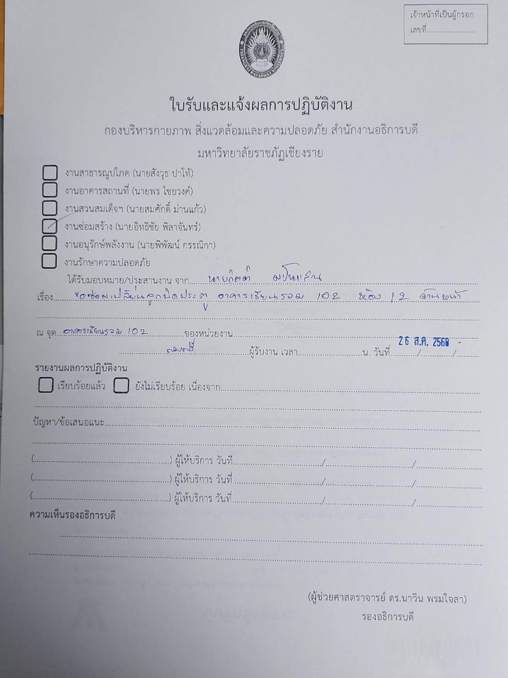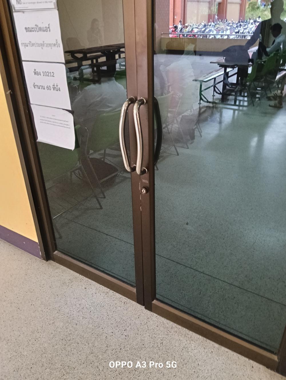 กองบริหารกายภาพฯ ลูกบิดประตูด้านหน้า ห้อง 10212 อาคารเรียนรวม 102 เสีย
