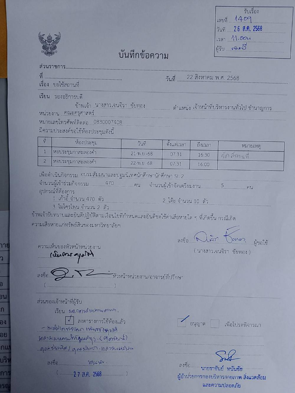 จัดสถานที่หอประชุมกาสะลองคำ อบรมสัมมนาและปฐมนิเทศนักศึกษา SIL2