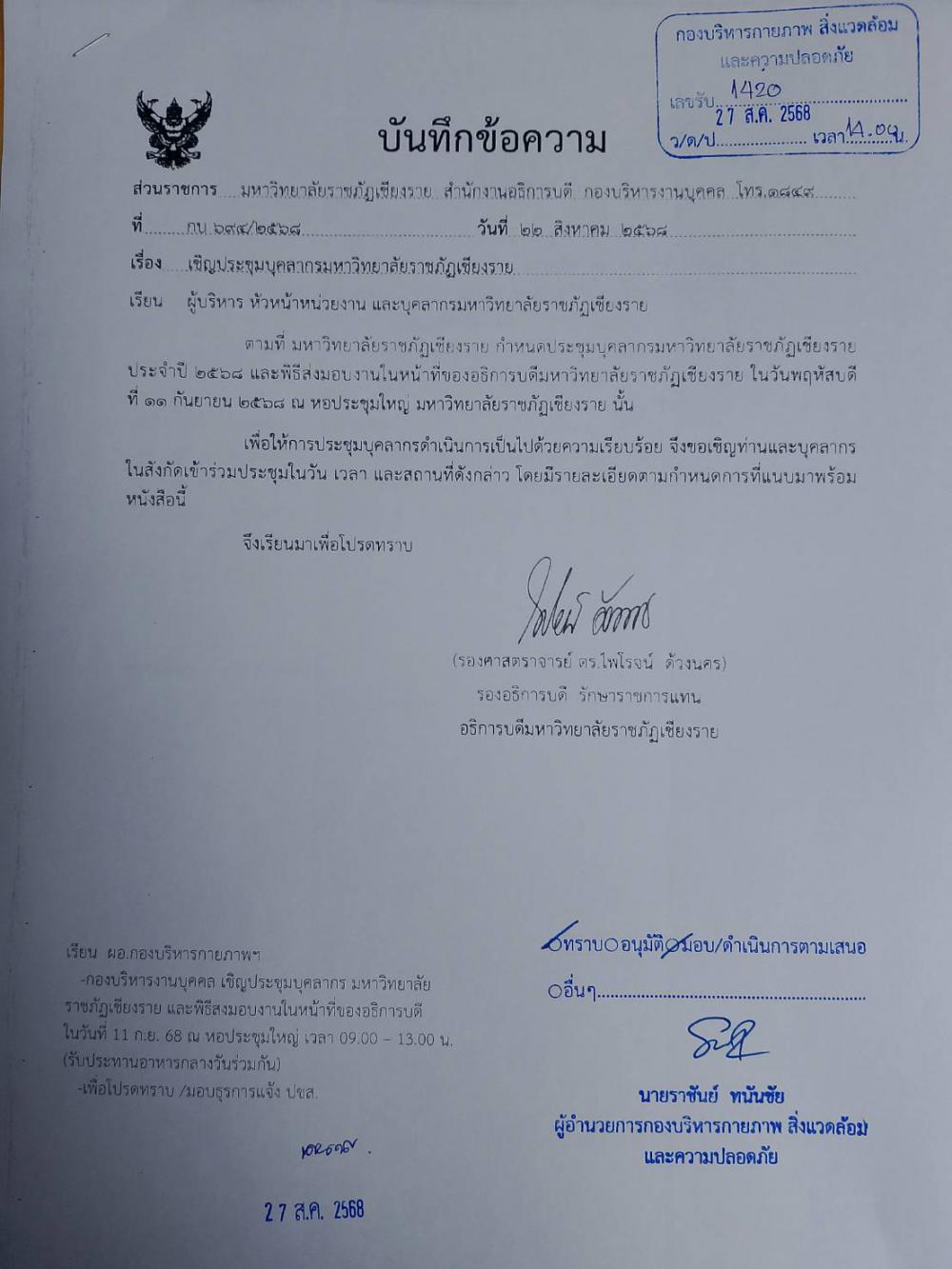 กองบริหารงานบุคคล จัดสถานที่งานประชุมบุคลากรมหาวิทยาลัยฯ ณ หอประชุมใหญ่ วันที่ 11 ก.ย. 2568