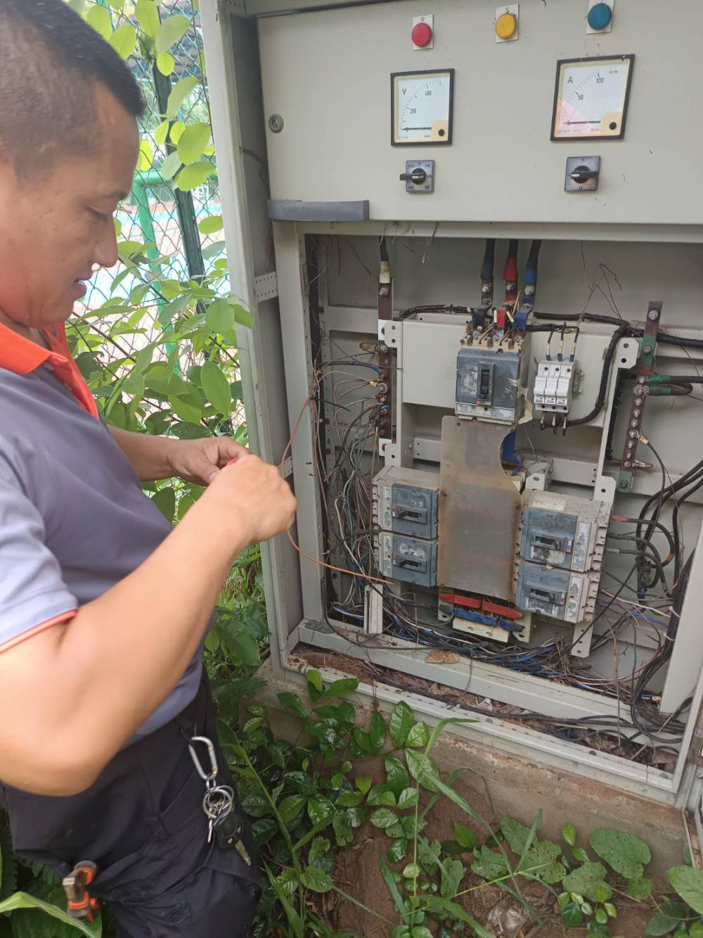 กองบริหารกายภาพฯ ได้รับแจ็งว่าไฟฟ้าไม่เข้าตู้กระรจายสัญญาณ