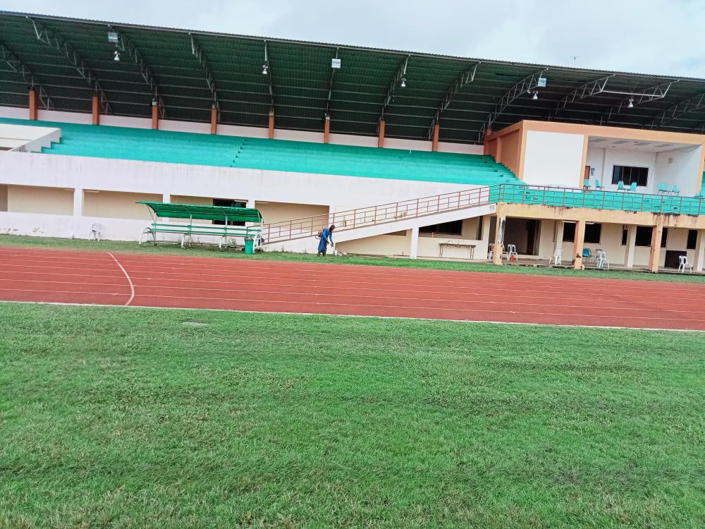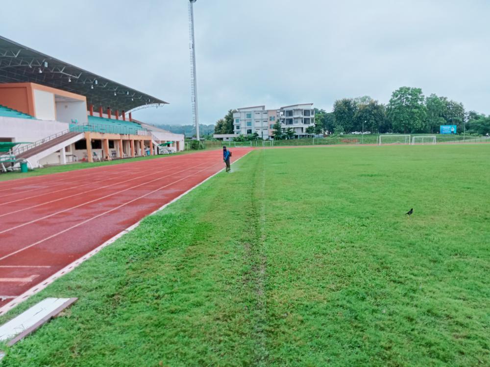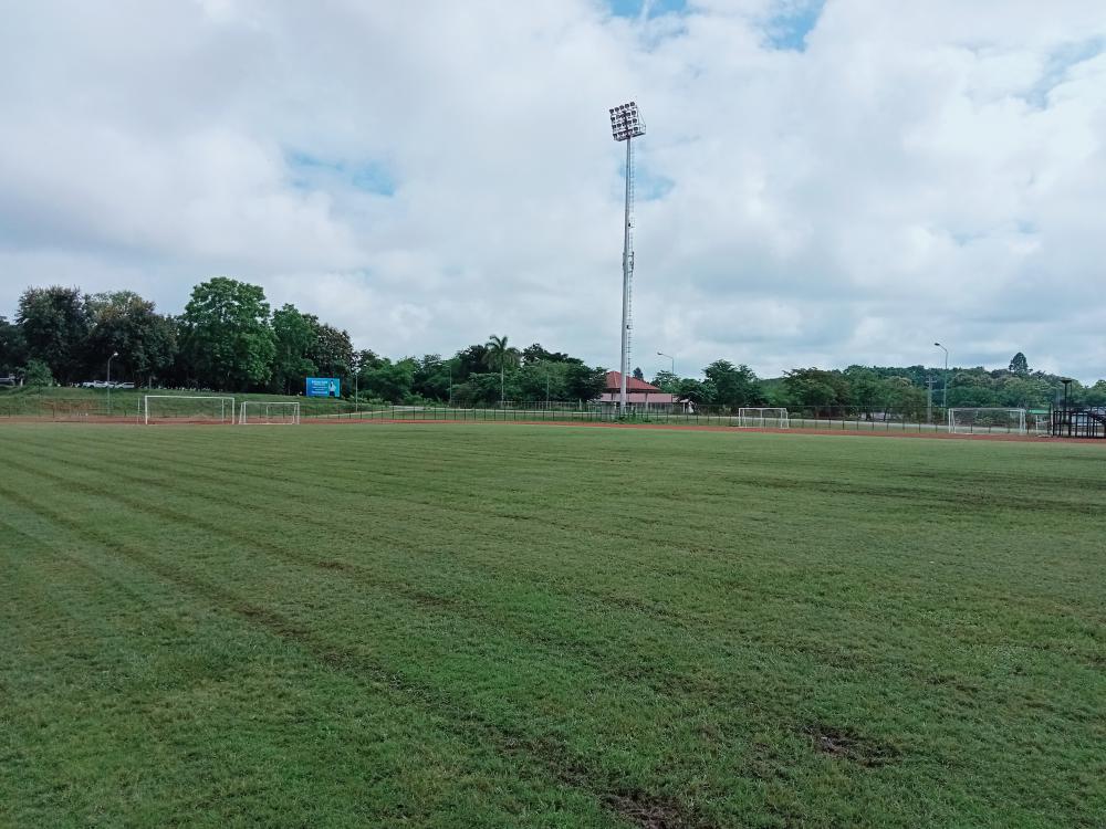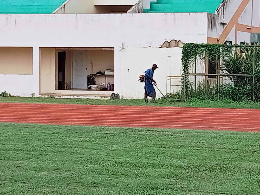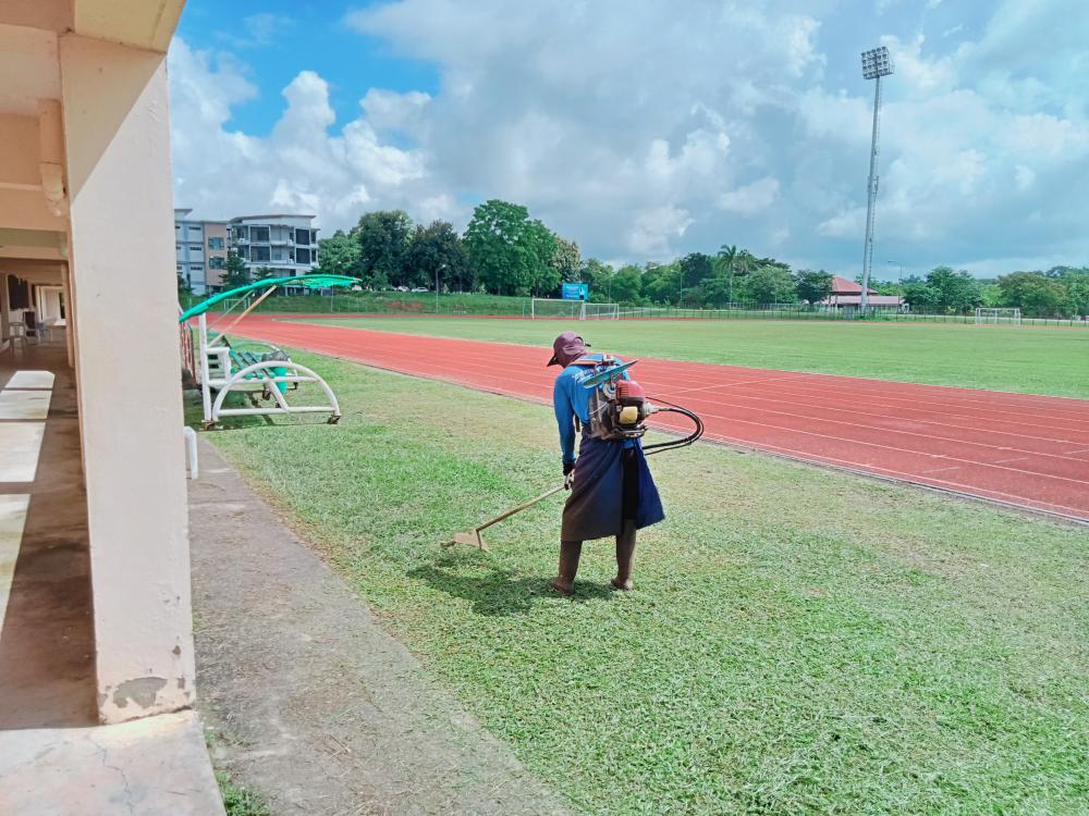 กองบริหารกายภาพฯ ตัดหญ้าบริเวณสนามบอลใหญ่