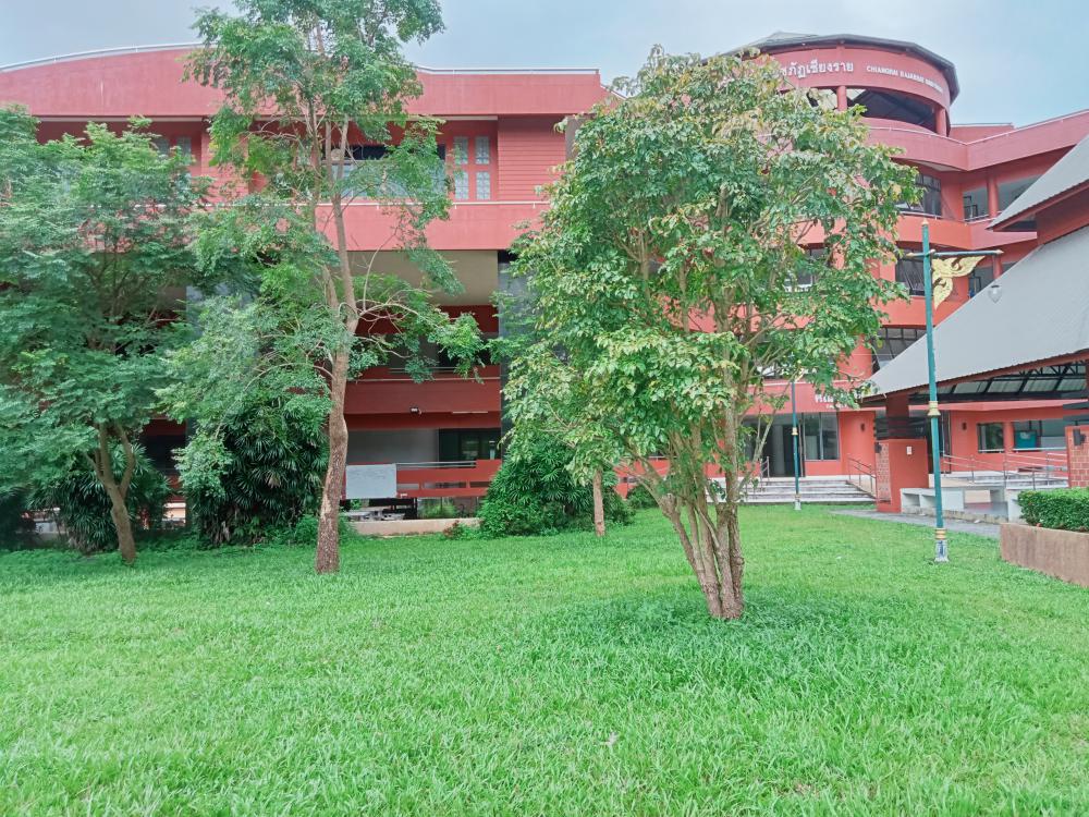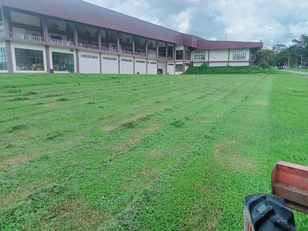 กองบริหารกายภาพฯ ขับแทรกเตอร์ตัดหญ้าลานหน้าตึก25 ลานหน้าตึก ไอที ข้างหอประชุมใหญ่
