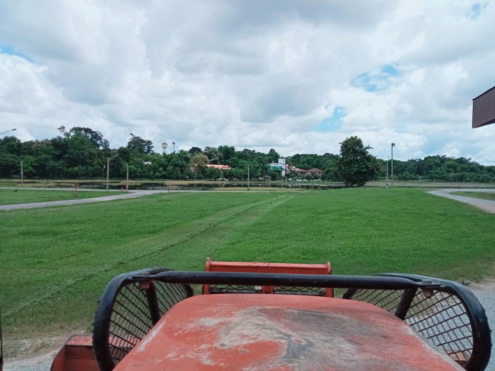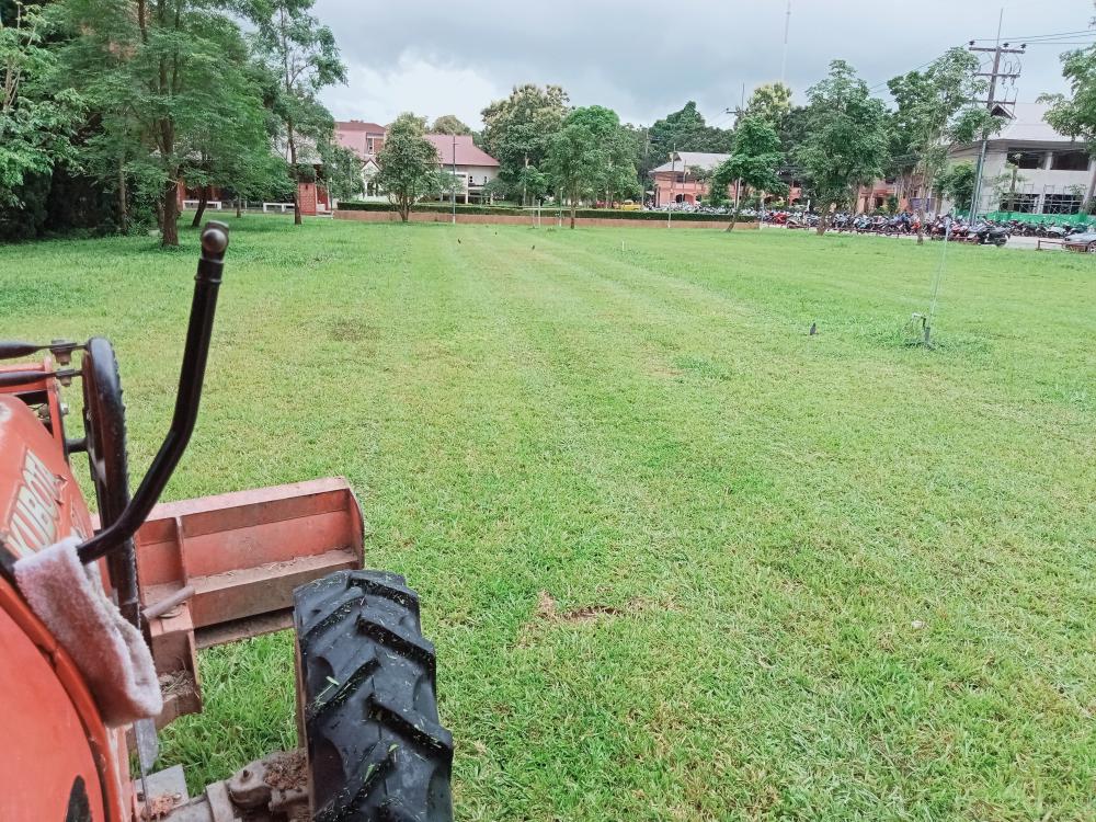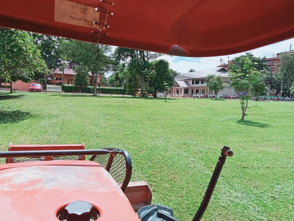 ขับแทรกเตอร์ตัดหญ้าลานหน้าตึก25 ลานหน้าตึก ไอที ข้างหอประชุมใหญ่