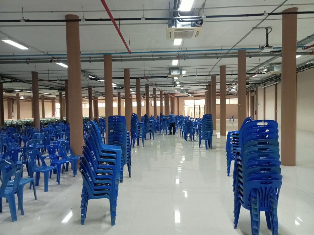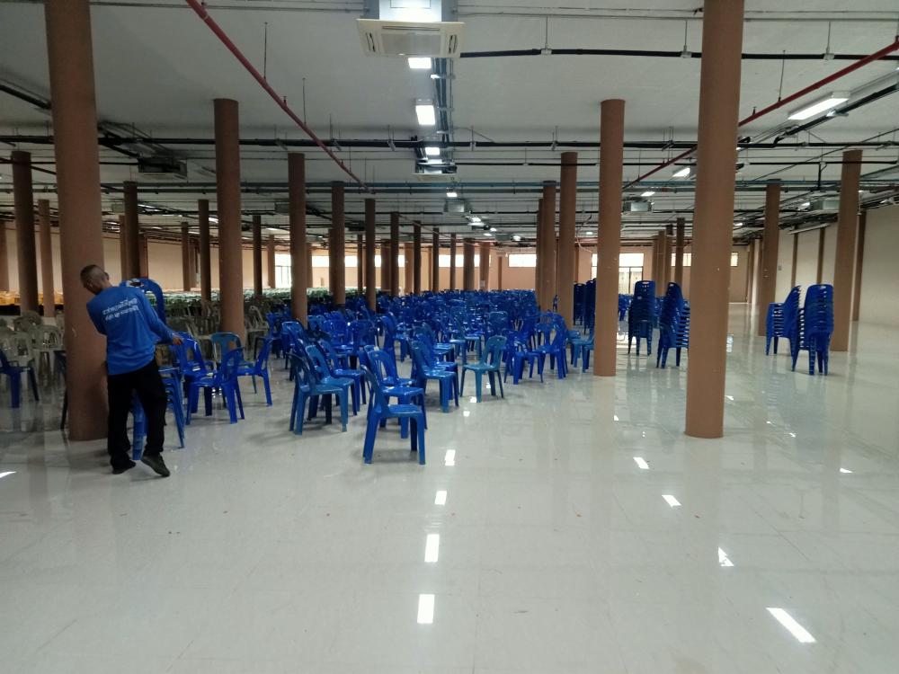 เก็บเก้าอี้ด้านล่างหอประชุมใหญ่