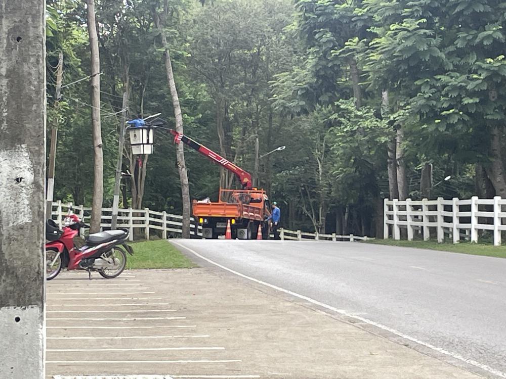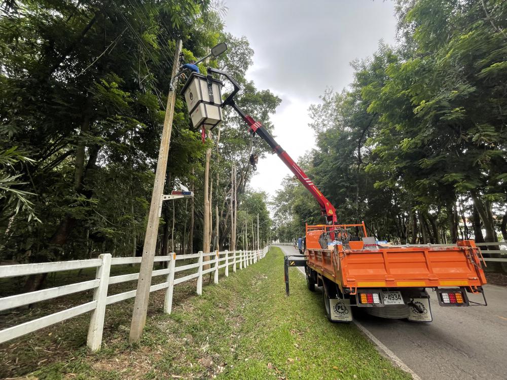 กองบริหารกายภาพฯ ซ่อมเปลี่ยนไฟกิ่งสวนสมเด็จถนนเส้นหนองบัวน้อยไปหาหนองบัวใหญ่