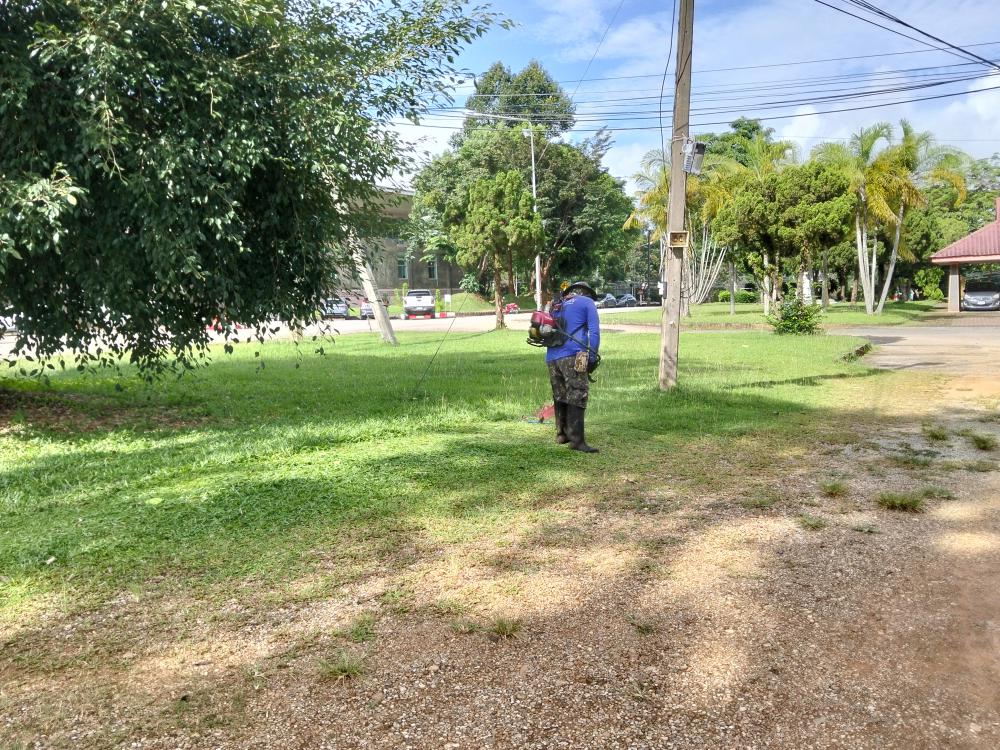 ส่วนกลาง มหาวิทยาลัย ตัดหญ้าบริเวณโรงงานแปรรูปอาหารเพื่อชุมชนฯ **จะมีคนมาดูงานวันที่ 16-17 ก.ย. 2568