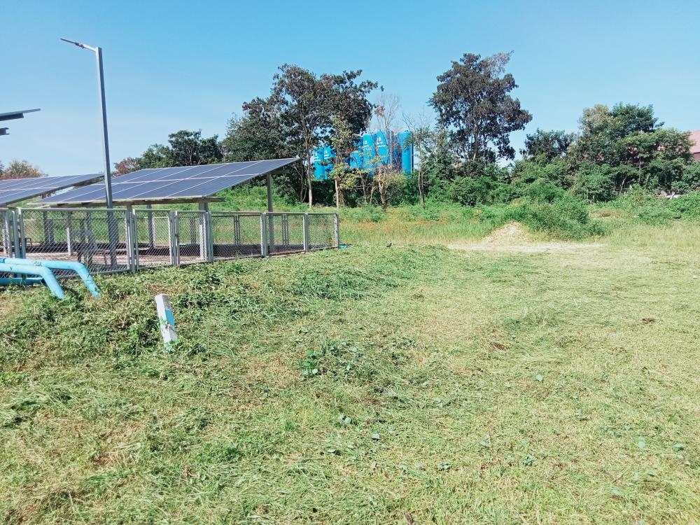 ขับแทรกเตอร์ตัดหญ้าบริเวณปั๊มน้ำโซล่าเซลล์ประตู 3