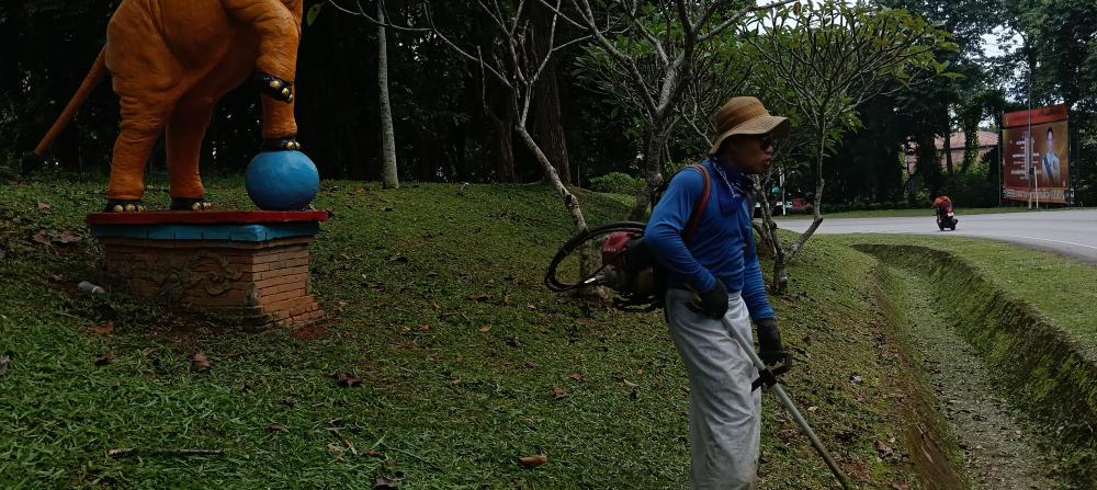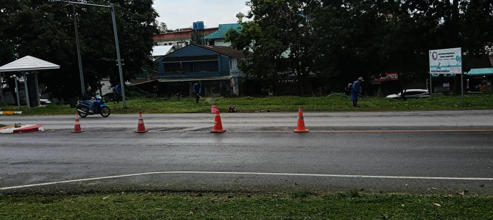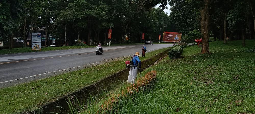ตัดหญ้าเกาะกลางถนนด้านหน้ามหาวิทยาลัย