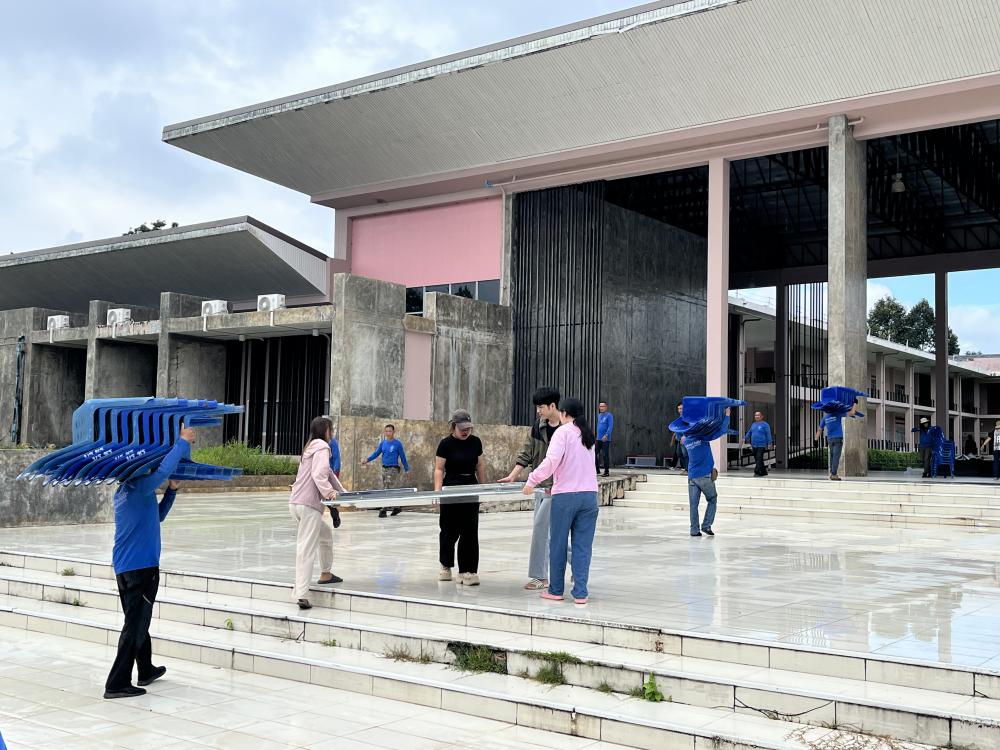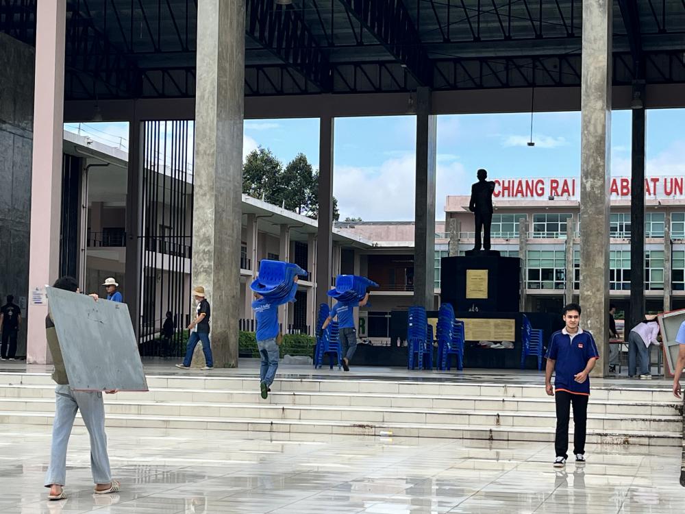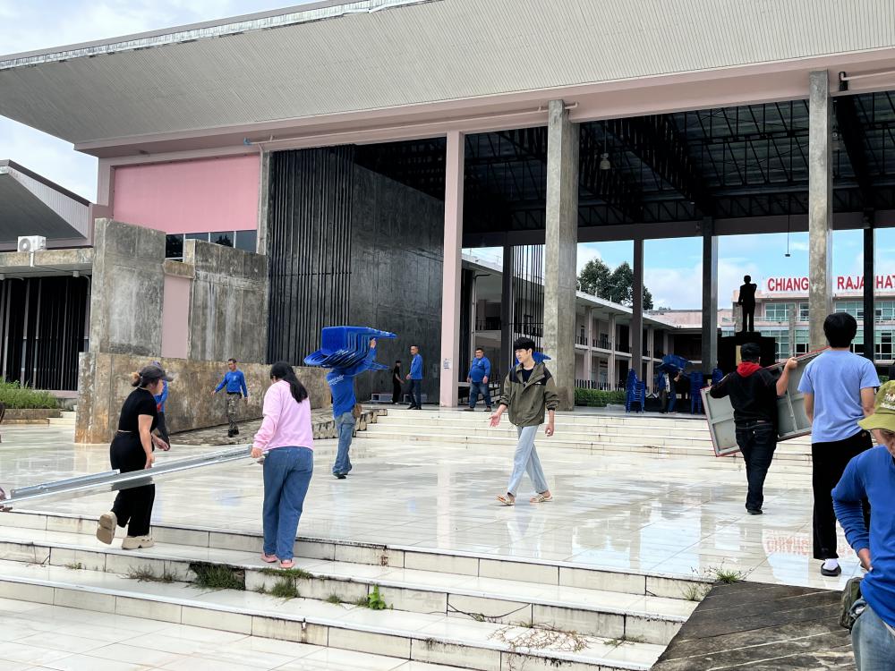 สำนักศิลปะฯ เก็บโต๊ะเต็นท์ของต่างๆหลังเสร็จสิ้นงาน ทำบุญ 100 วัน พุทธสถาน