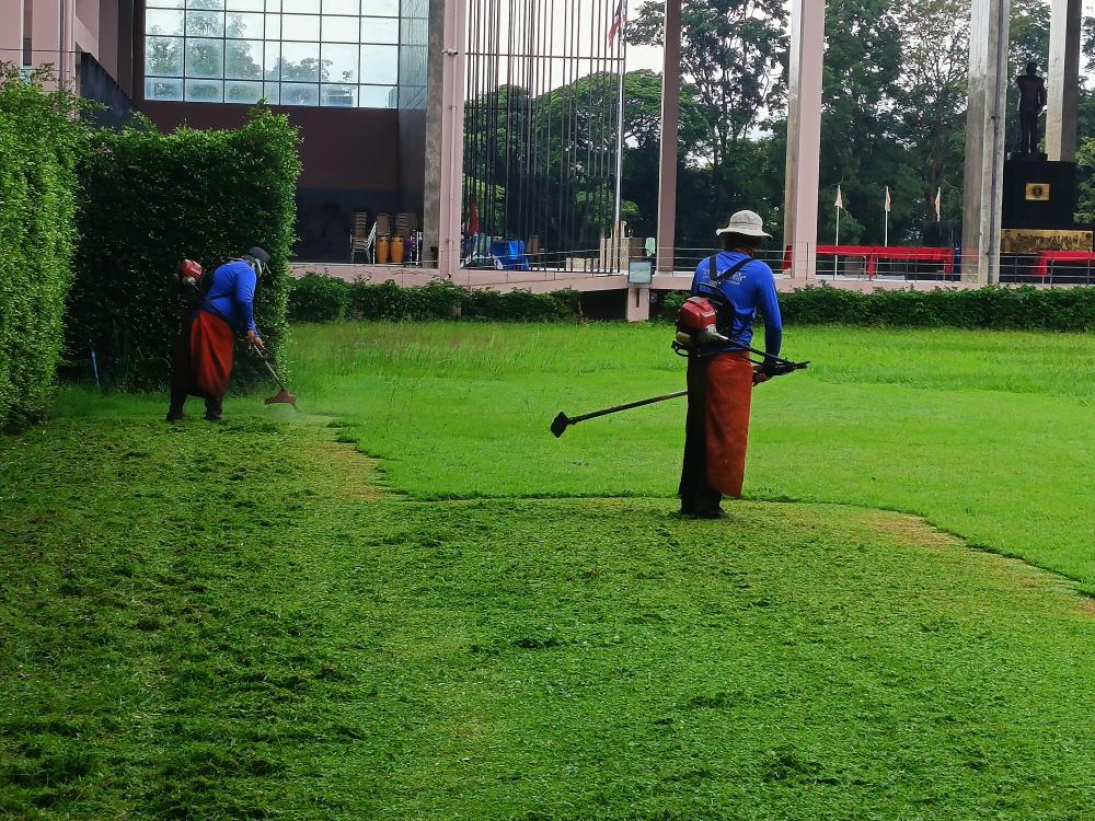 ตัดหญ้า สนามด้านในสำนักงานบริหารงานกลาง