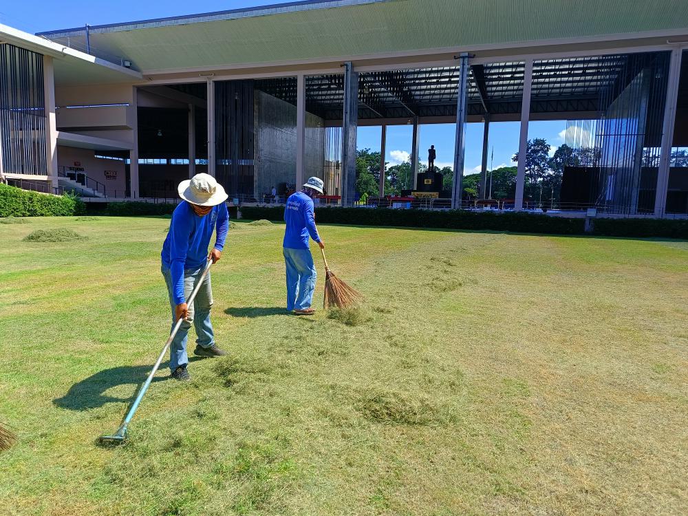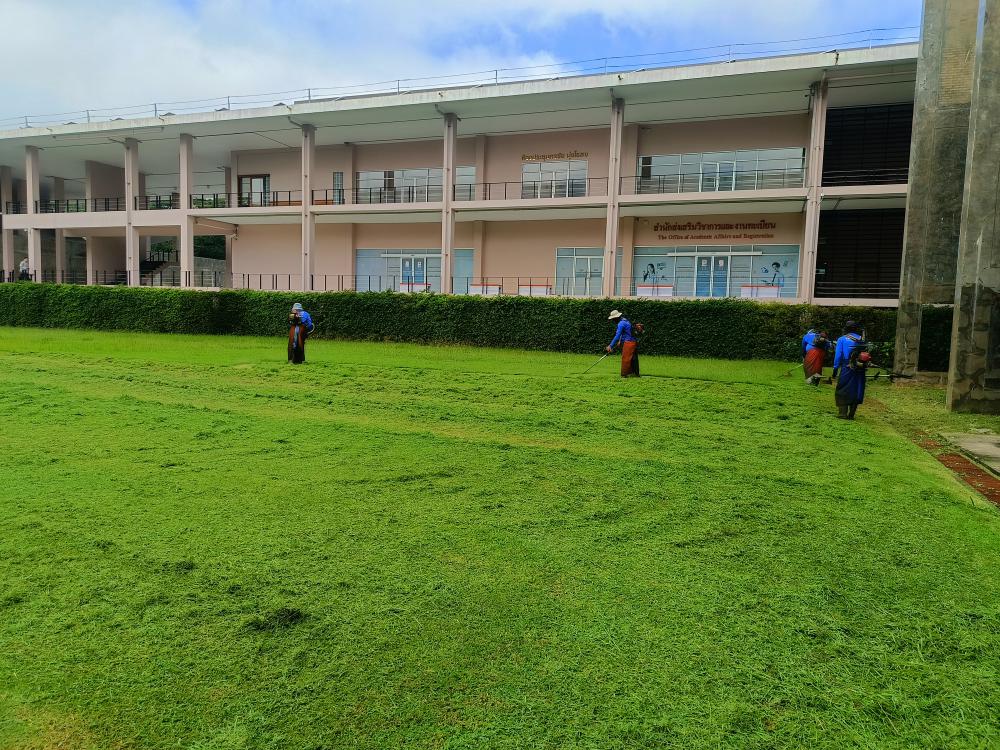 ตัดหญ้า สนามด้านใน สำนักงานบริหารงานกลาง