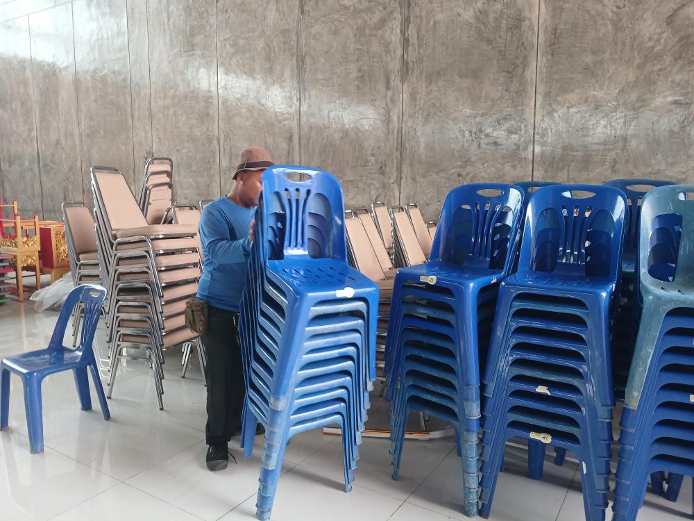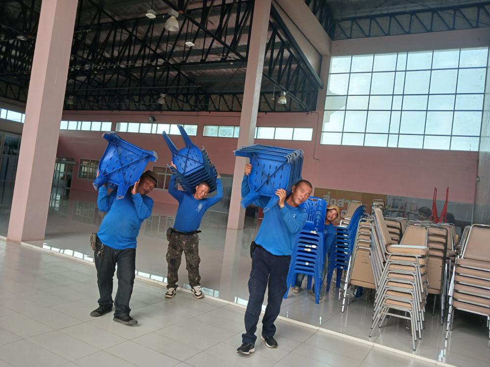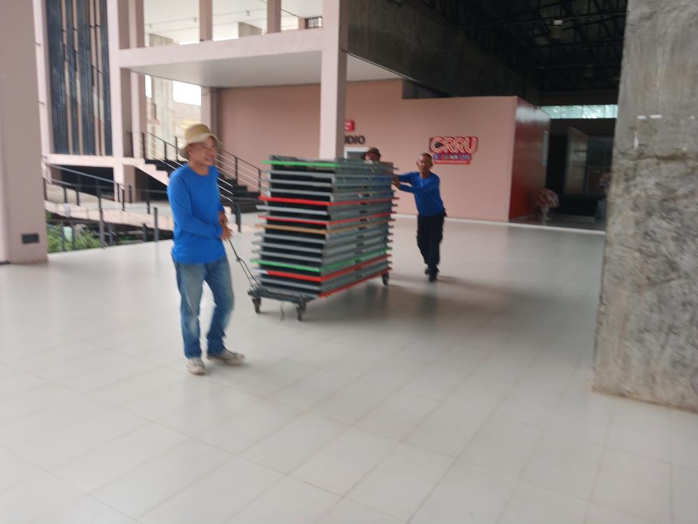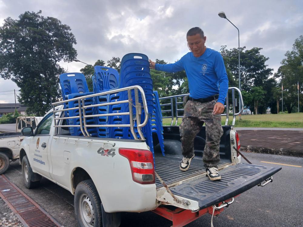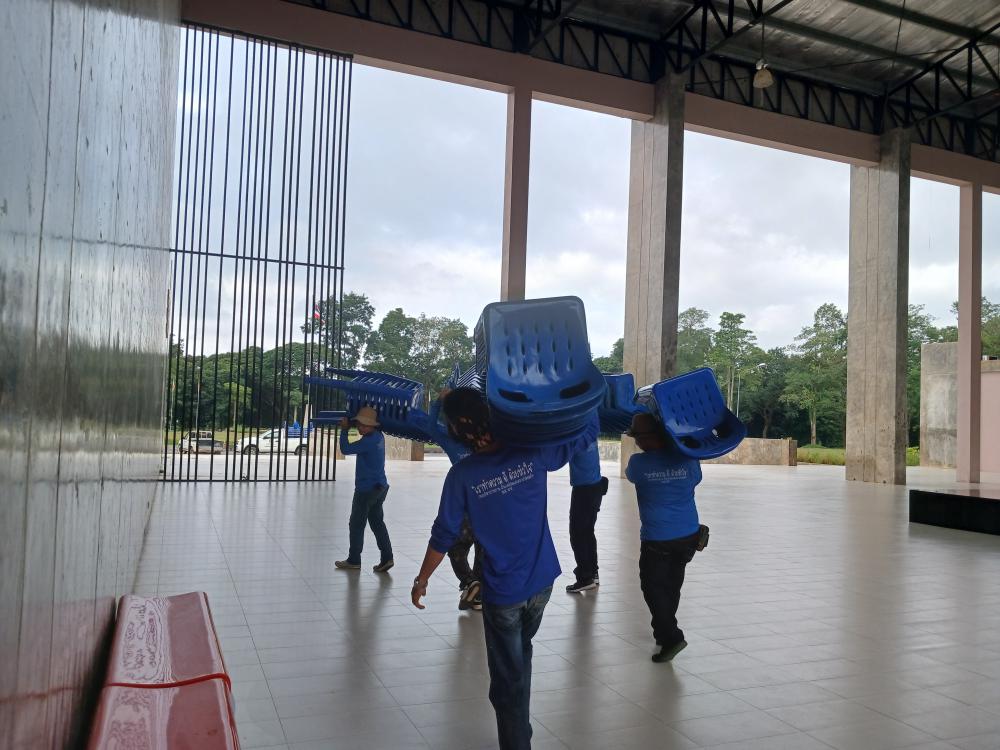 คณะวิทยาการจัดการ เก็บโต๊ะเก้าอี้ลานด้านหน้าอนุสาวรีย์หลังเสร็จสิ้นงานคณะว.จ